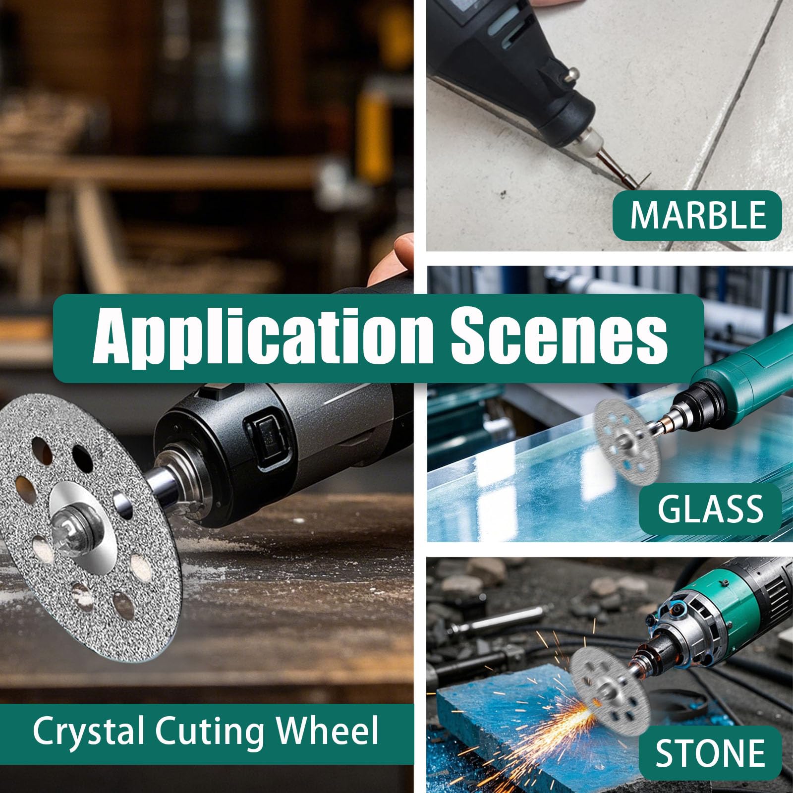 - 10Pcs Diamond cutting wheels: The cutting wheels made of aluminum oxide, it is completely coated with fine diamond particles. The diamond cutting wheel are sharp and strong, they are suitable for cutting gem, ceramics and glass. And comes with 2Pcs 3mm shank.