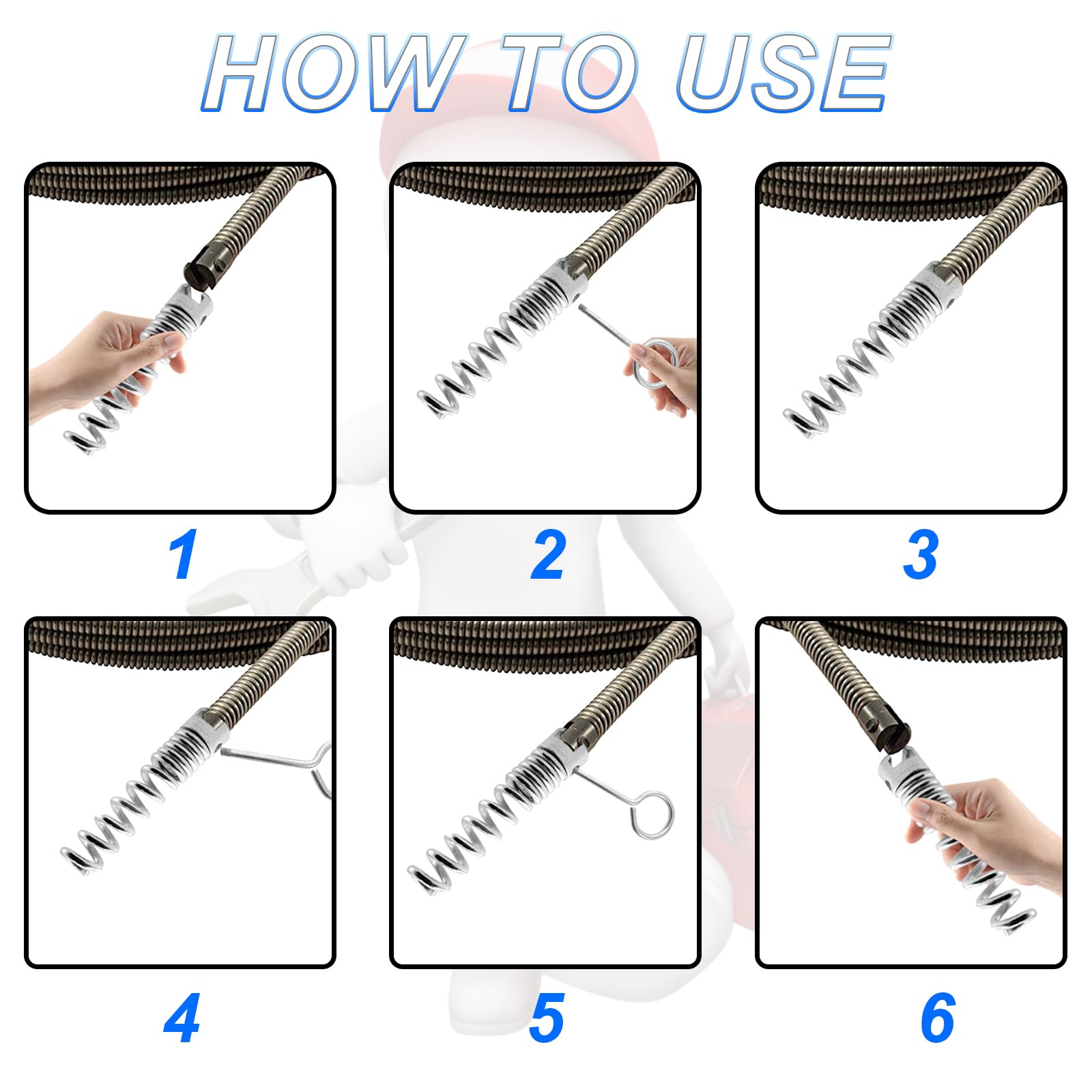 - 7-in-1 Tool Set: This set includes 1 handle and 6 different heads (straight, grease, olive, shovel, quad, saw tooth) to tackle all types of clogs in homes, kitchens, bathrooms, and hotels