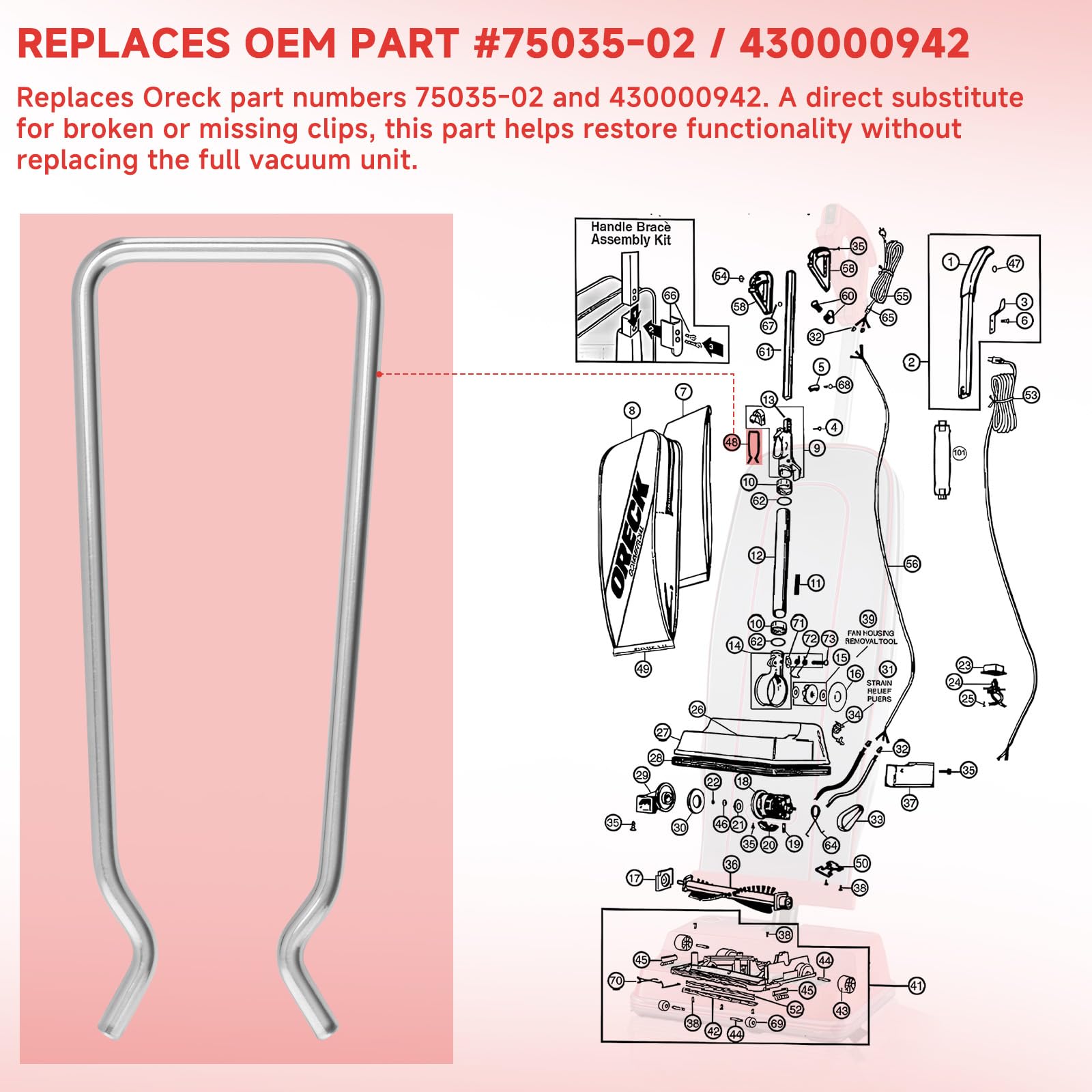 - 【Replaces OEM Part #75035-02 / 430000942】Replaces Oreck part numbers 75035-02 and 430000942. A direct substitute for broken or missing clips, this part helps restore functionality without replacing the full vacuum unit.