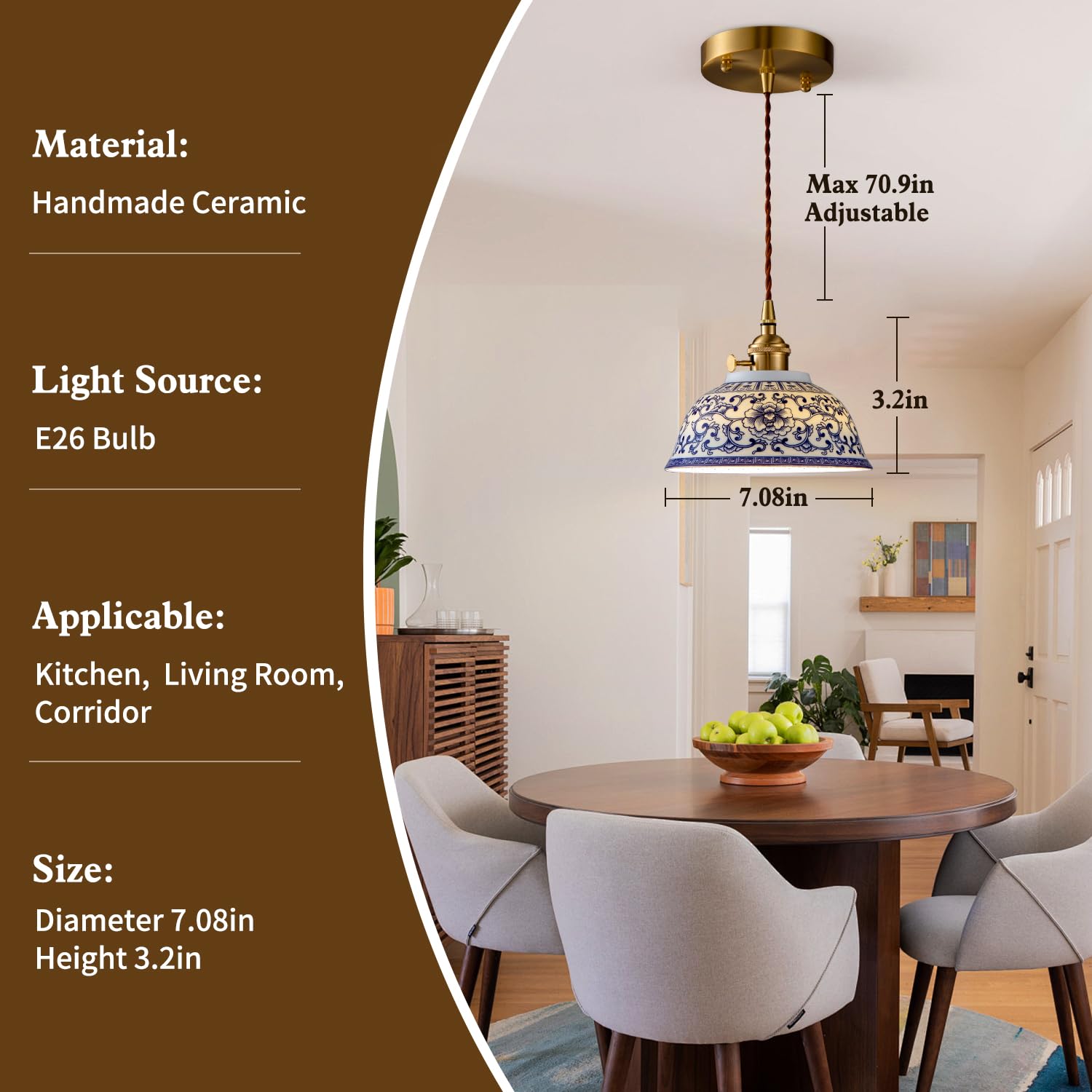 - 【Applicable Scenarios】The farmhouse pendant light is an ideal choice for the bedside in the bedroom, the living room corridor, and the dining room kitchen island. The modern pendant light blue and white porcelain exterior design adds a fashionable artistic style and can well enhance the decorative atmosphere at home even when the light is not turned on.