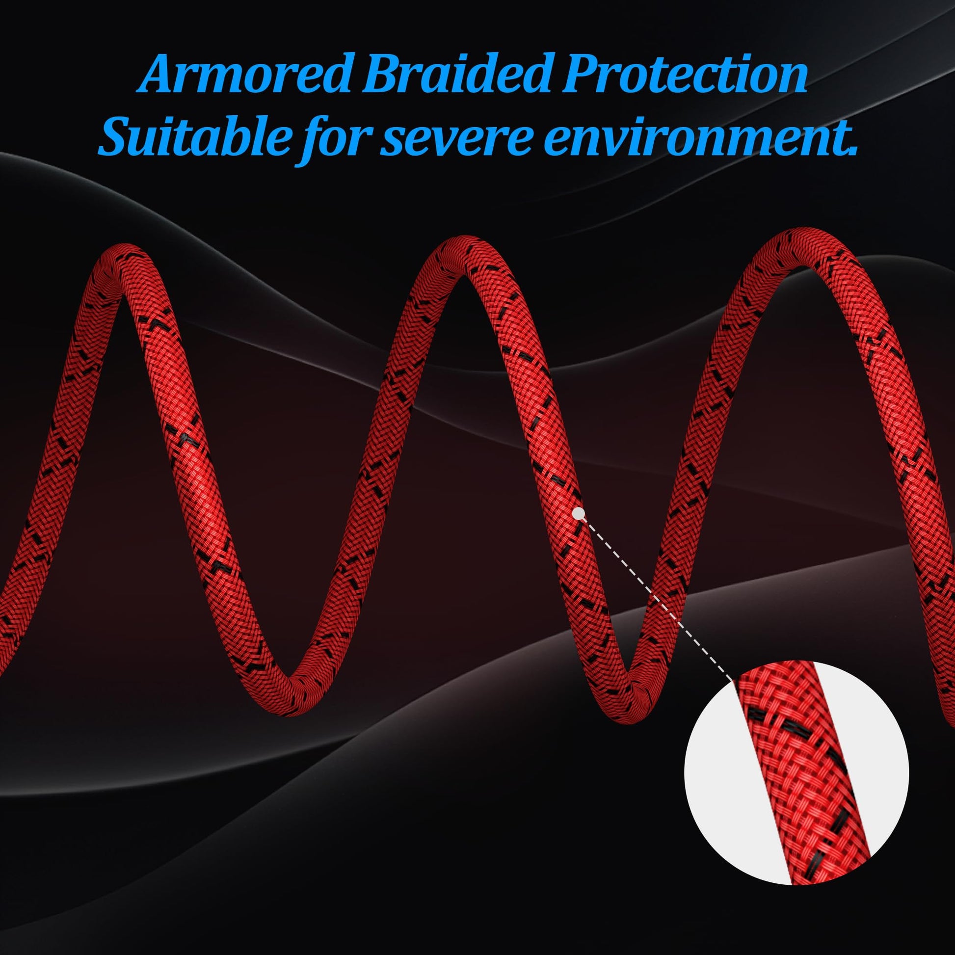 - 【Nylon Braided Jacket】: Compared to most PVC cables on the market, we have added a layer of nylon braided jacket on the outside, which not only protects the cable itself, but also prevents small animals from tearing and damaging the cable, giving it a longer service life.