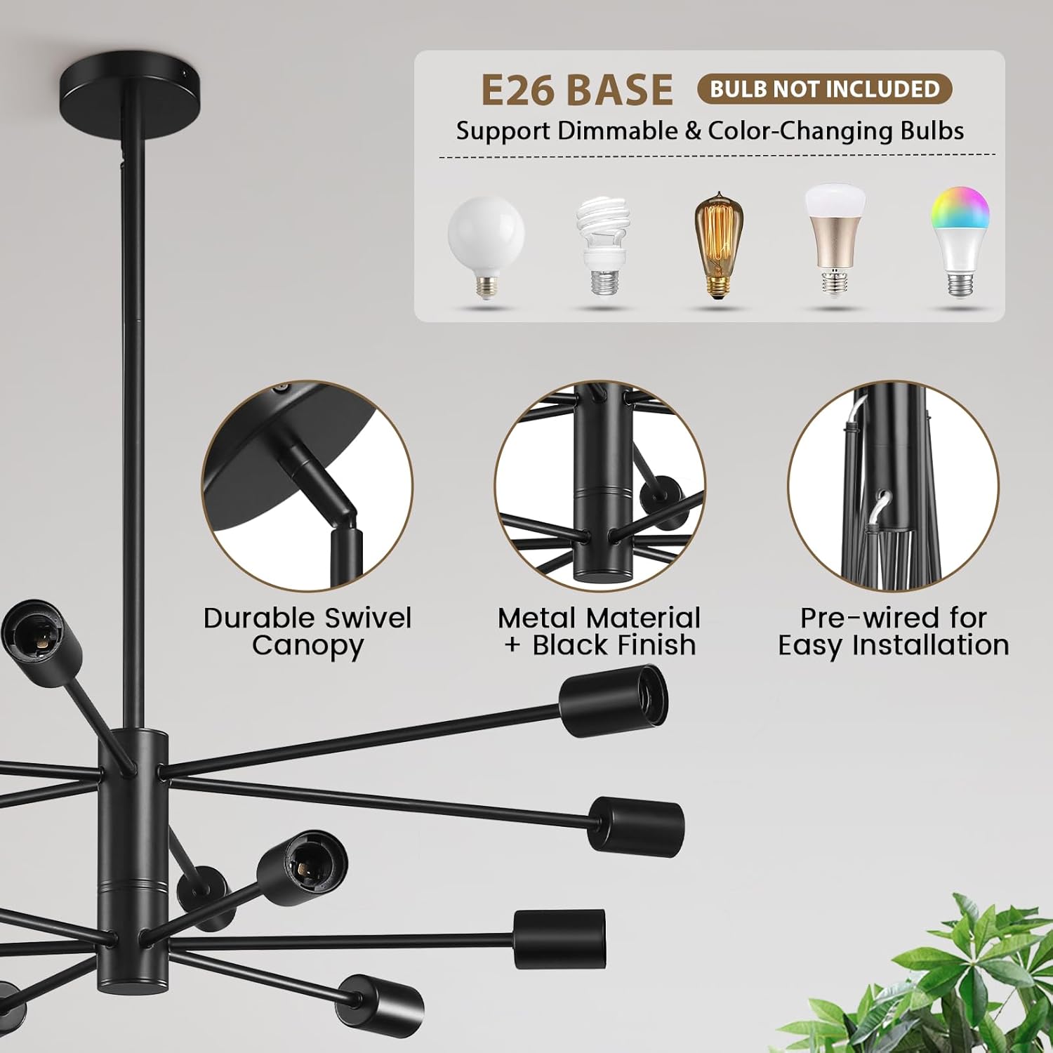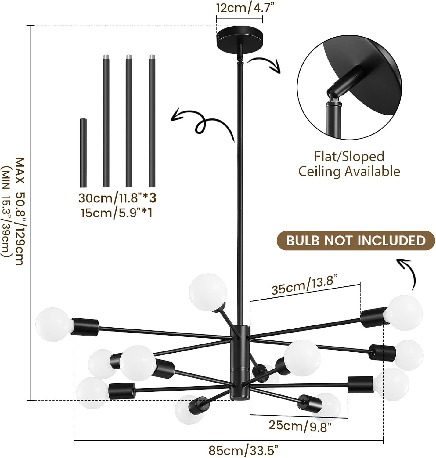 - Fit Sloped/Vaulted Ceilings - This sputnik chandelier with a durable swivel can be installed on flat, vaulted or angled ceilings. Attention: Before installing this ceiling light fixture, please make sure the height is set and the base is fixed in a firm place (safety first).