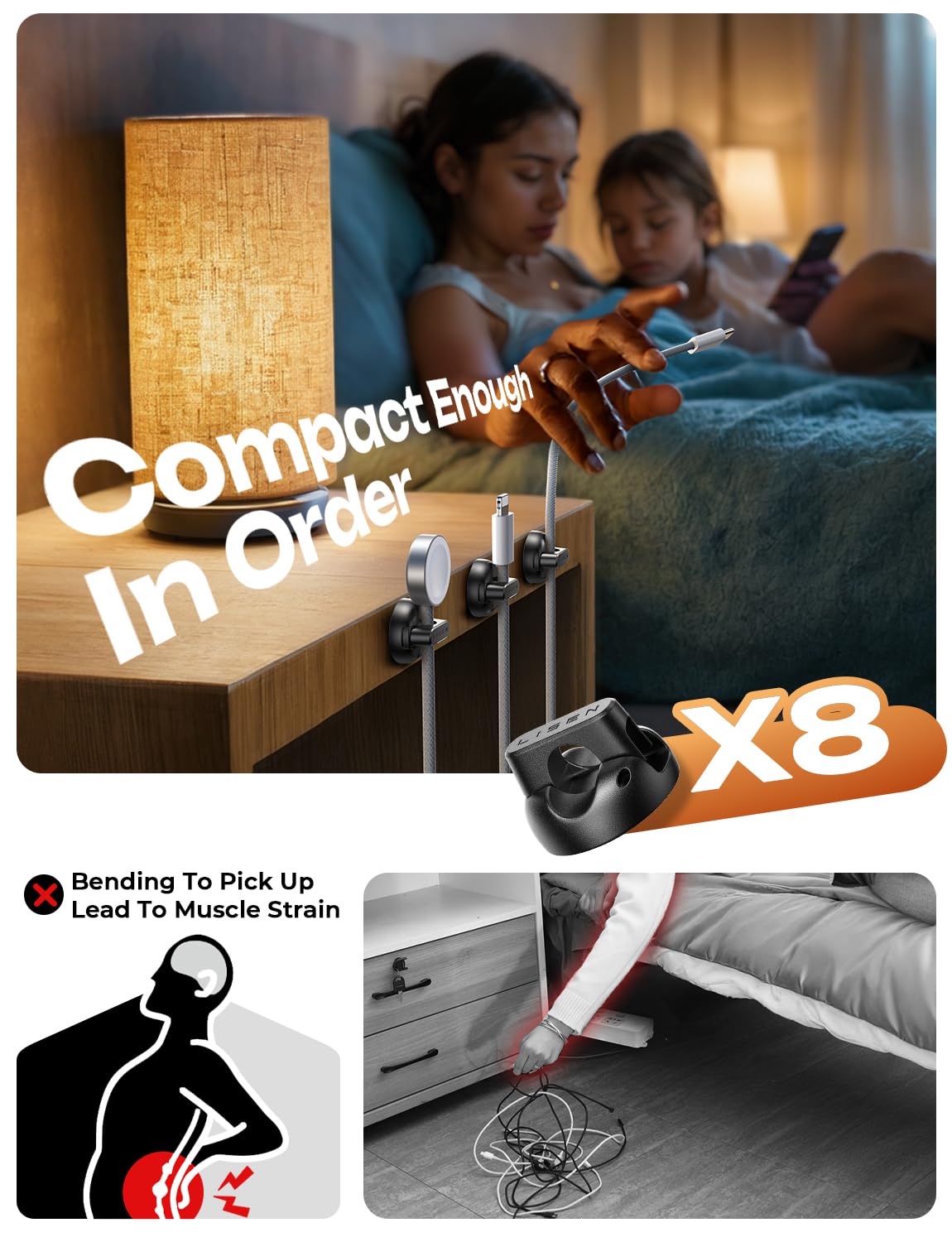 - Compact, Tidy Up Any Space: Measuring just 0.85" x 0.85" x 0.55" and weighing only 3g, LISEN cold holder is perfect for narrow spaces. With 8 individual clips included, you can neatly arrange cables on desks, nightstands, walls, or even in your car. This versatile organizer is a must-have accessory for keeping your space clean and clutter-free