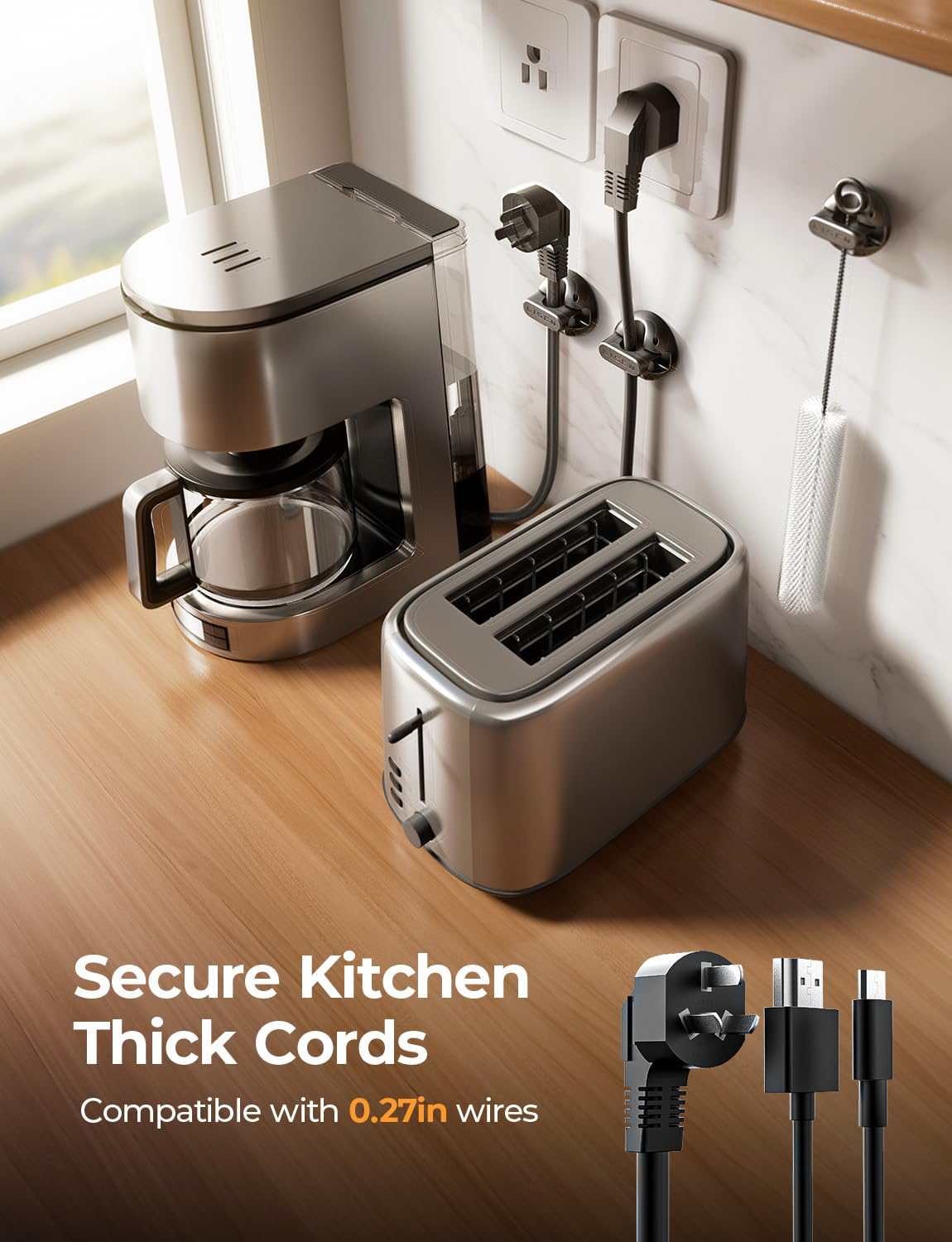 - Perfect Slot Size for Wide Cable Compatibility: With a 0.27-inch (7mm) slot diameter, this versatile cord holders for nightstand, also referred to as desk cable clips, works perfectly with phone chargers, USB cords, HDMI cables, power cords, and slim cables like the iPhone silicone charging cord. Enjoy smooth cable pulling and a clutter-free space