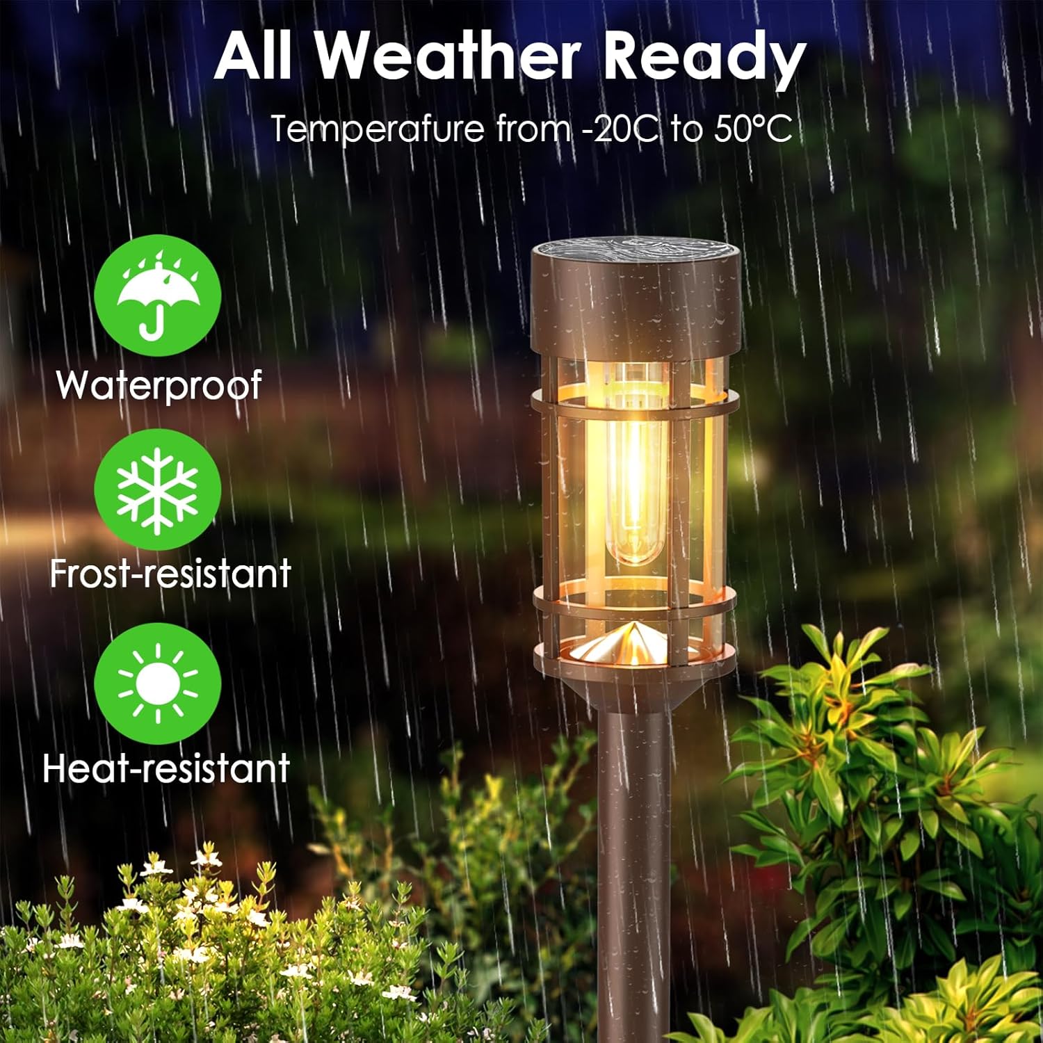 - 【All-Weather Resistant & Waterproof】These lights are constructed with premium ABS casing, high-transparency glass lens, and stainless steel poles, they are built to withstand all types of weather conditions. Unlike plastic lampshades, our glass bodies will not yellow or corrode, ensuring long-lasting performance. Our solar lights provide reliable lighting for your home, even during rainy or winter seasons.