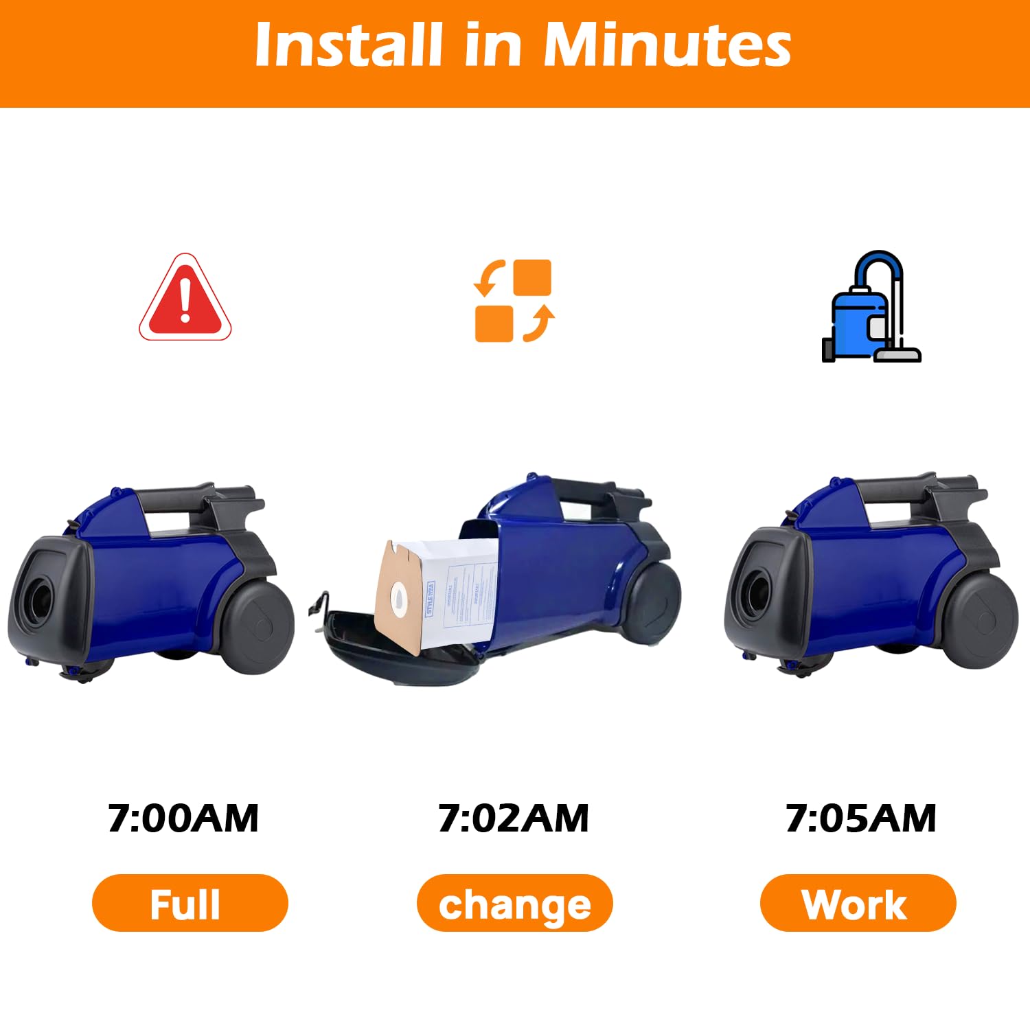 - Simple to install and remove, making vacuum bag changes quick and convenient