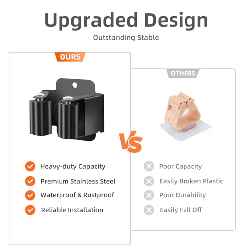 - Premium Material: Made from high-quality stainless steel, our mop holder is rustproof and waterproof, ensuring long-term use even in humid spaces, sturdier than plastic and resists deformation, which can keep tools organized for years, outstanding stable