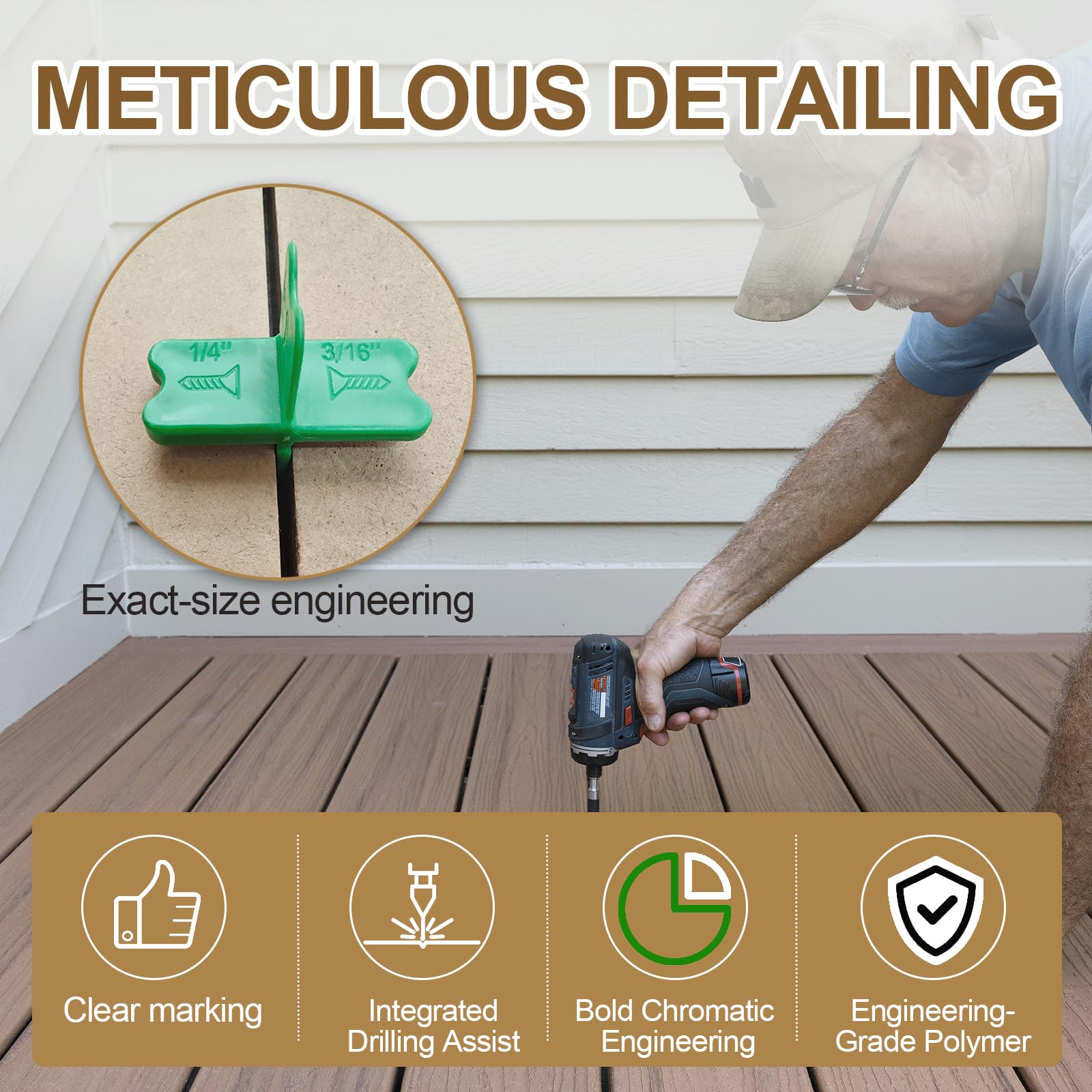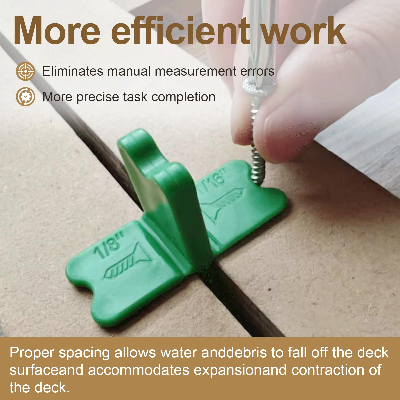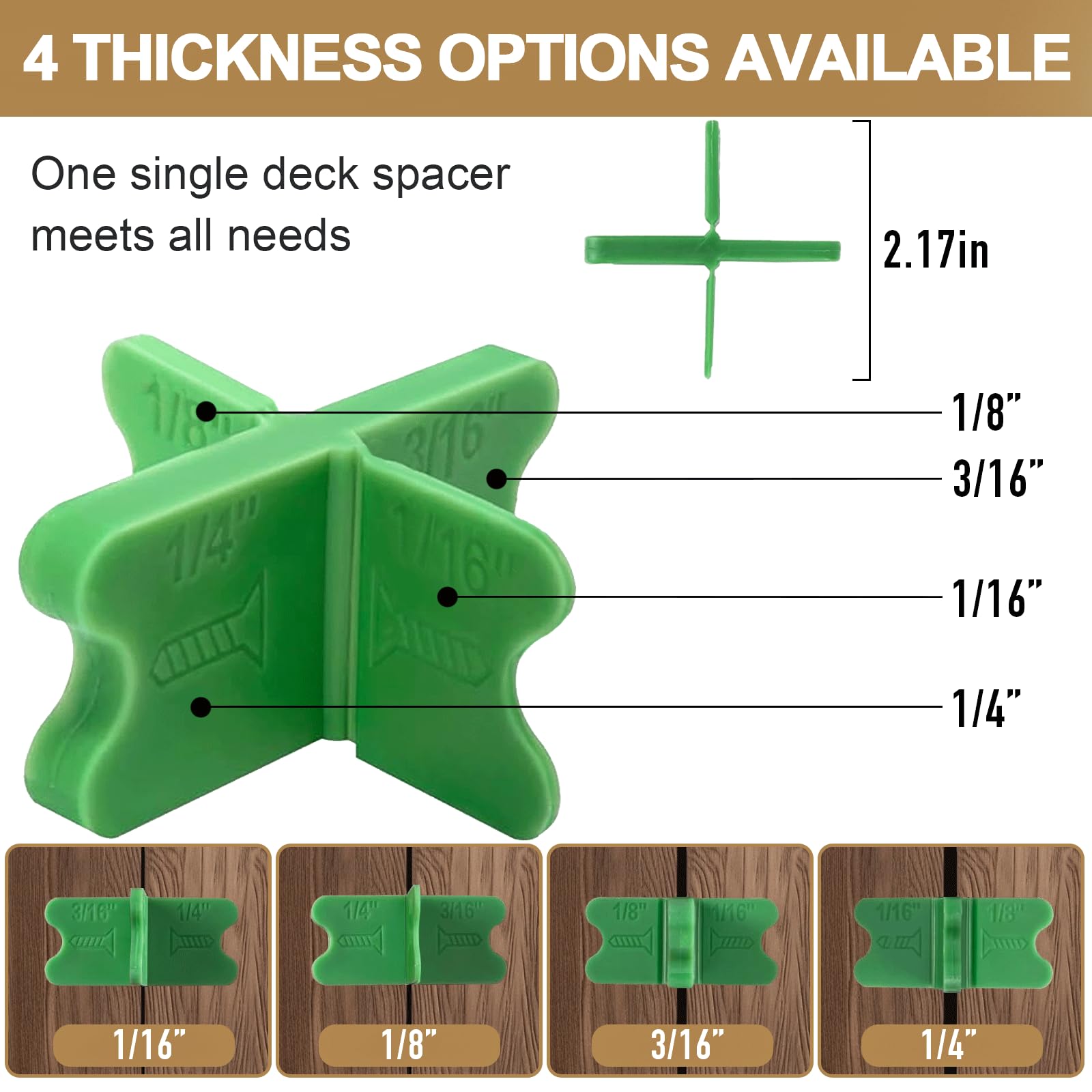 - Boost Your Efficiency – Want to finish your deck faster with less effort? Each spacer is clearly labeled for easy size identification, while the bright color makes it quick to spot in your tool kit, saving time on every project