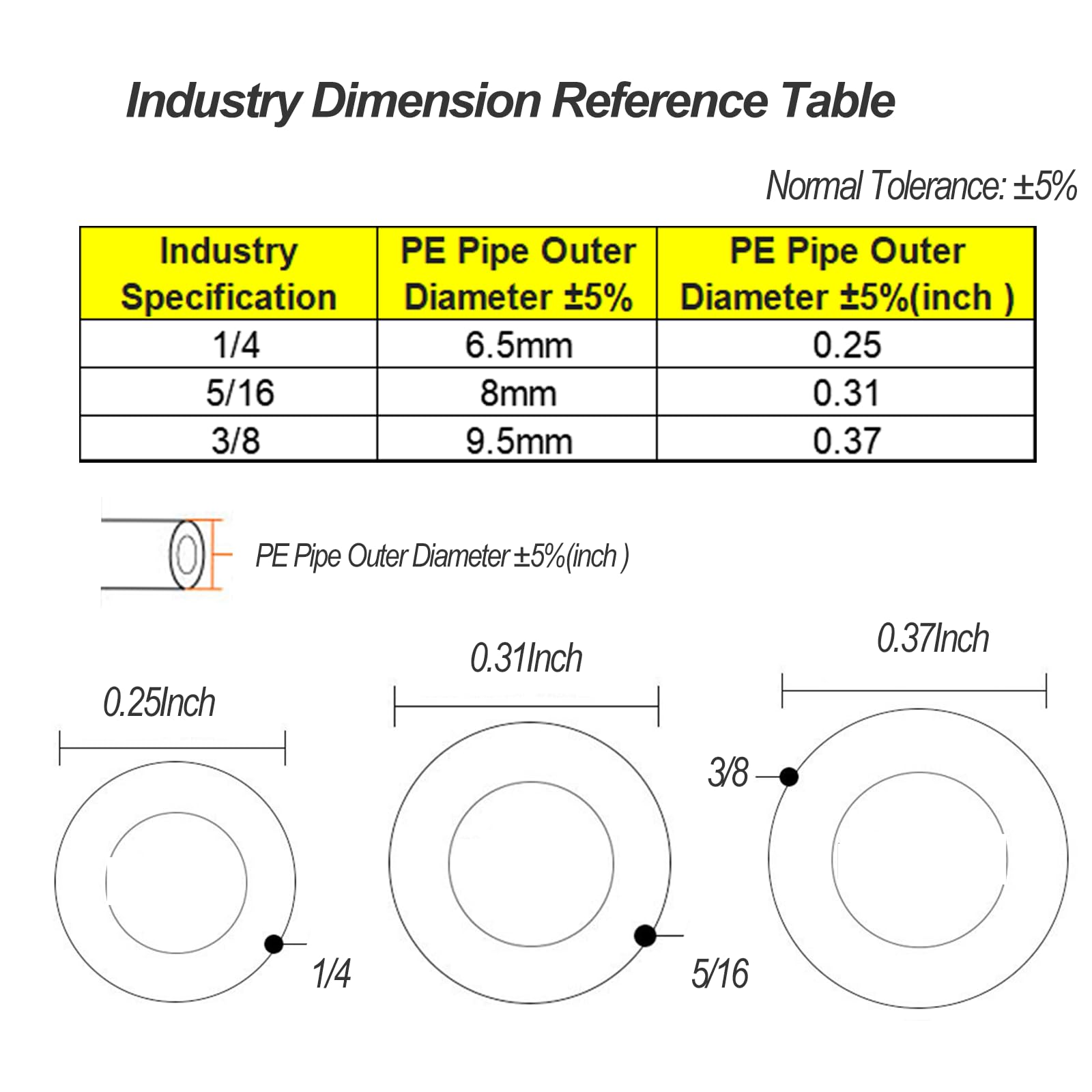 - Size Reminder - Please measure before purchasing! The outer diameter of [1/4 inch] is 0.25 inches; the outer diameter of [5/16 inch] is 0.31 inches (8 mm); the outer diameter of [3/8 inch] is 0.375 inches (9.53 mm). The diameter difference is up to 48%! Please measure the existing components or consult a technician. This product listing corresponds to the 5/16 inch size, with an outer diameter of 0.31 inches (8 mm).