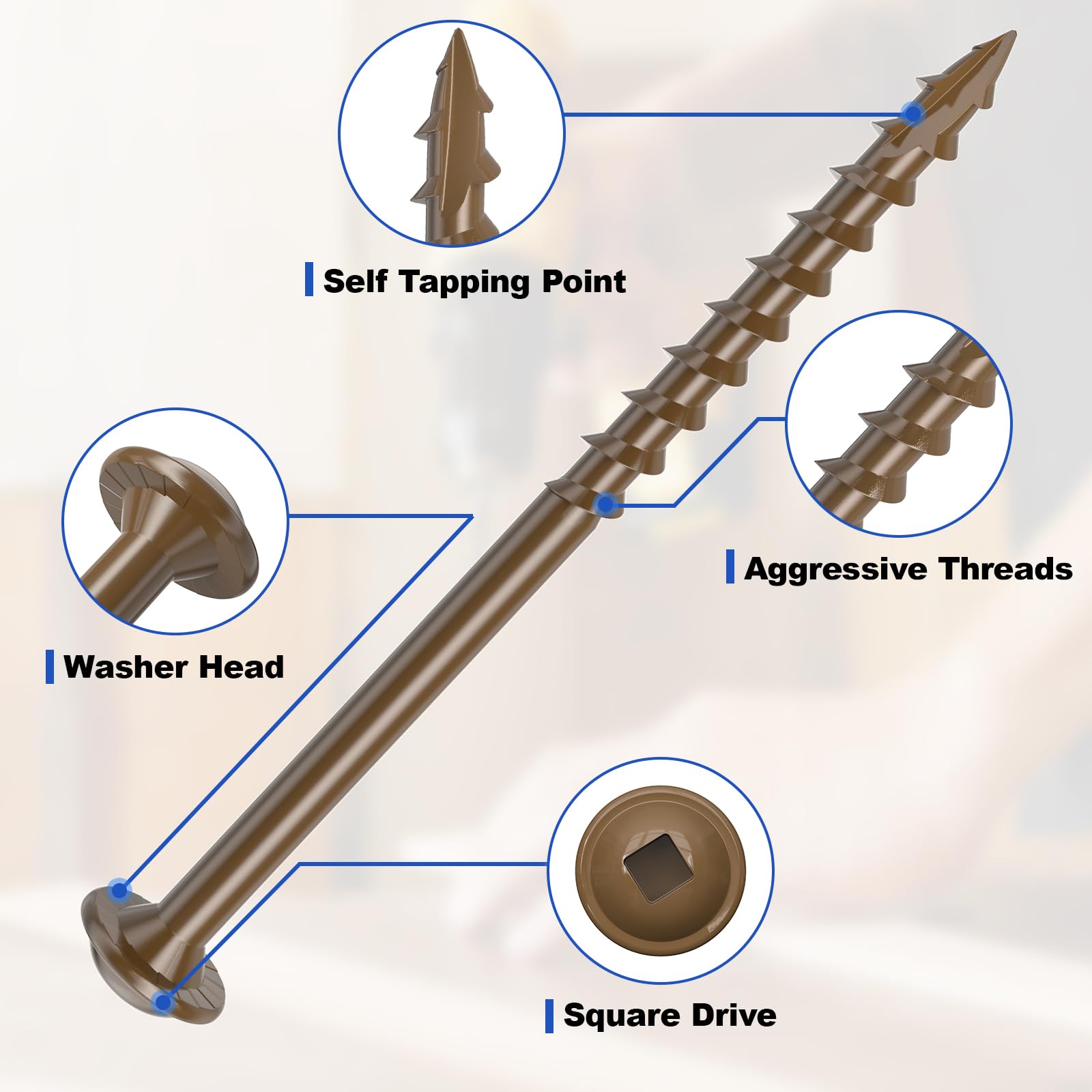 - 【Square Drive Design】: The deep square shape of the screws ensures a secure grip with the drive bit, with four square edges reducing torque for smooth driving and minimizing the risk of stripping.