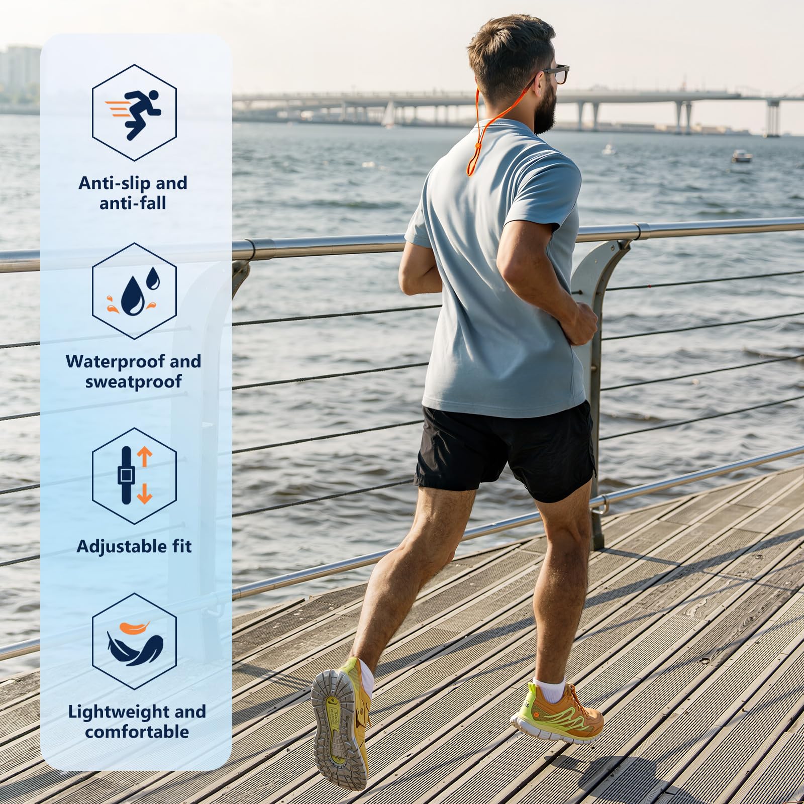 80Days Adjustable Eyeglass Strap: Nylon Retainer for Glasses and Sunglasses with Silicone Grips, Secure Fit