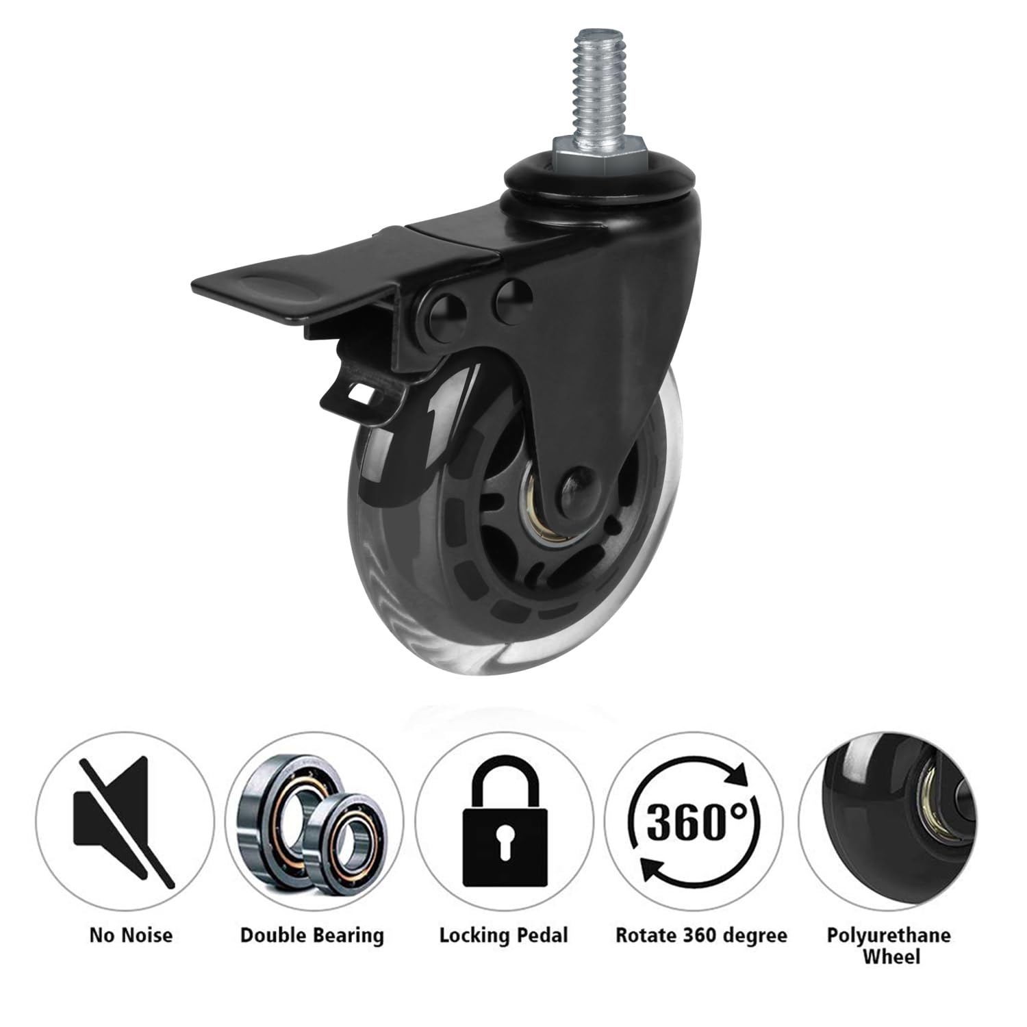 - 【Stem Casters Size】Pu Wheel Diameter: 3 Inchs, Threaded Stem Diameter: 3/8 Inch (10mm), Stem Height: 0.79 Inch (20mm). PLEASE NOTED: It's Not Metric M10 Thread.