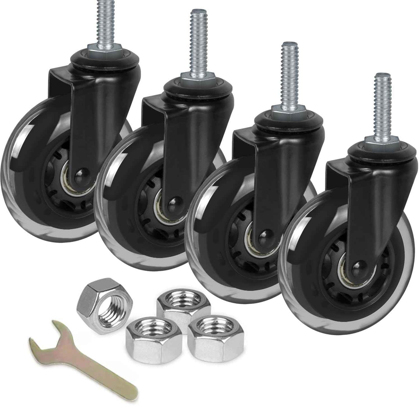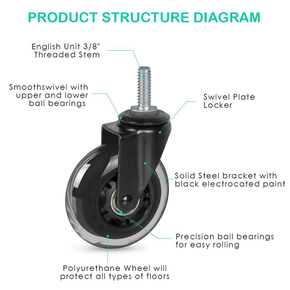 - 【Smooth & No Noise】Made of Polyurethane and Steel, roll quiet and no scratch on floor, PU rubber wheel will keep quiet movement on hard wood floor without scratch,wear-resistant and no noise.