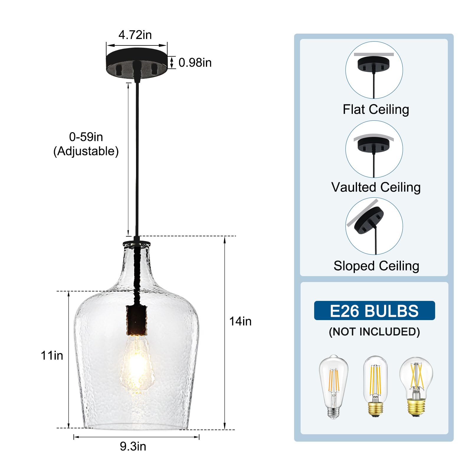 - ใBulb Requirementsใ: This black pendant lights kitchen island needs E26 base bulbs,60w Max (Bulbs NOT Included). Fully dimmable when compatible dimmer switch used. (Dimmer switch not included). This kitchen island light fixtures decor could be fully dimmable when used with dimmable bulbs and compatible dimmer switch.
