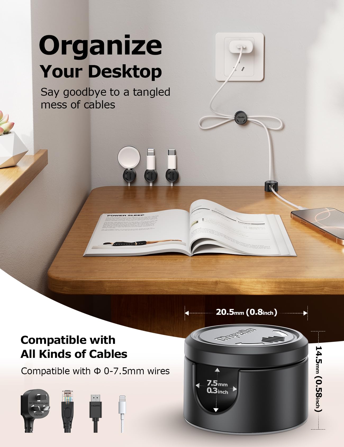 - ✅【Wide Compatibility for Most Cables】With a slot diameter of 0.3 inches (7.5mm), our magnetic cable clips can accommodate various cables including Type-C phone charger cords, HDMI cords, USB cables, lightning cords, computer power wires, laptop cords, and more.