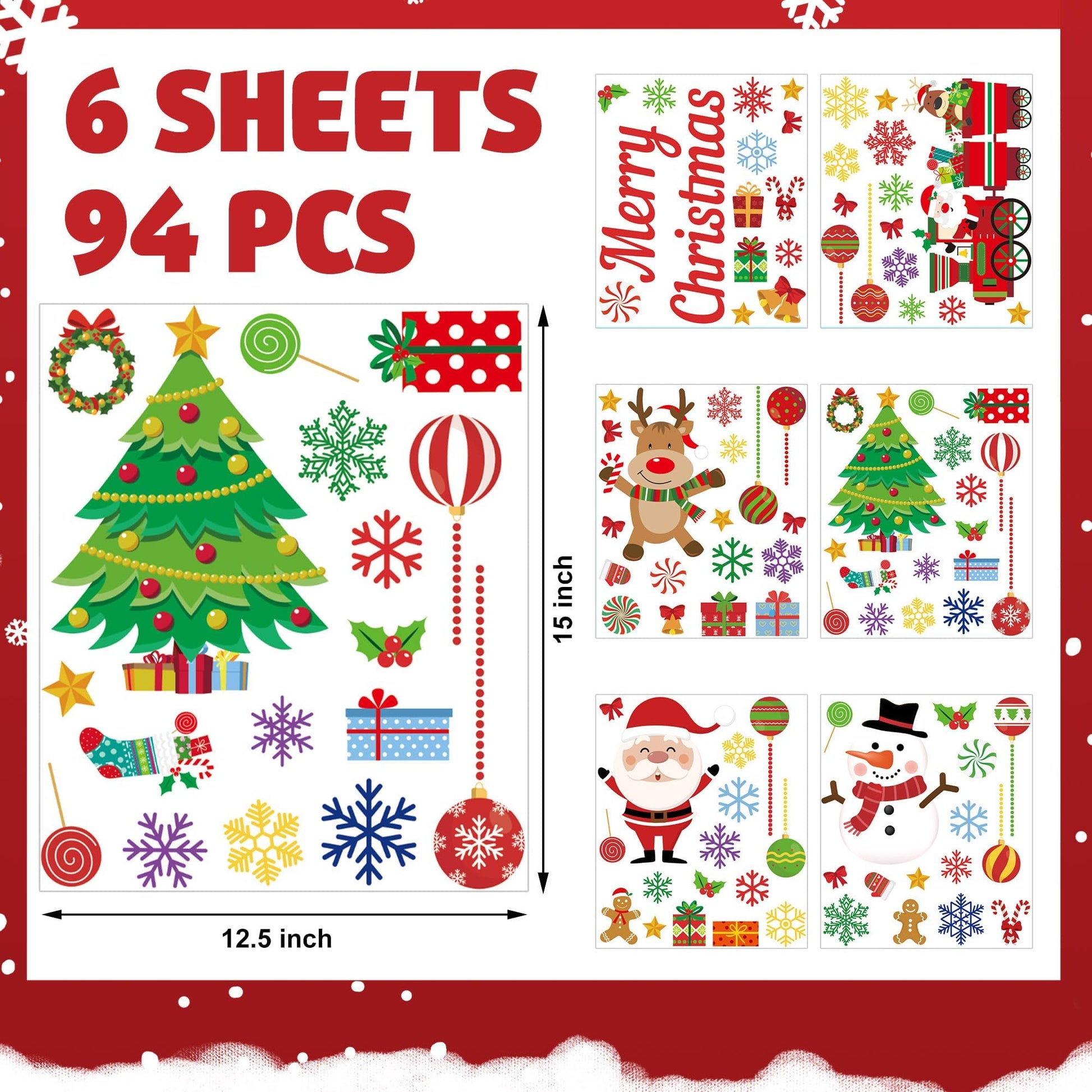 - Package content: you will receive 6 sheets of large Christmas wall sticker decals in different patterns, including snowman, Christmas tree and more, a total of 94 patterns, and the size is about 15 x 12.5 inch, sufficient quantity and various styles to meet your decoration needs.