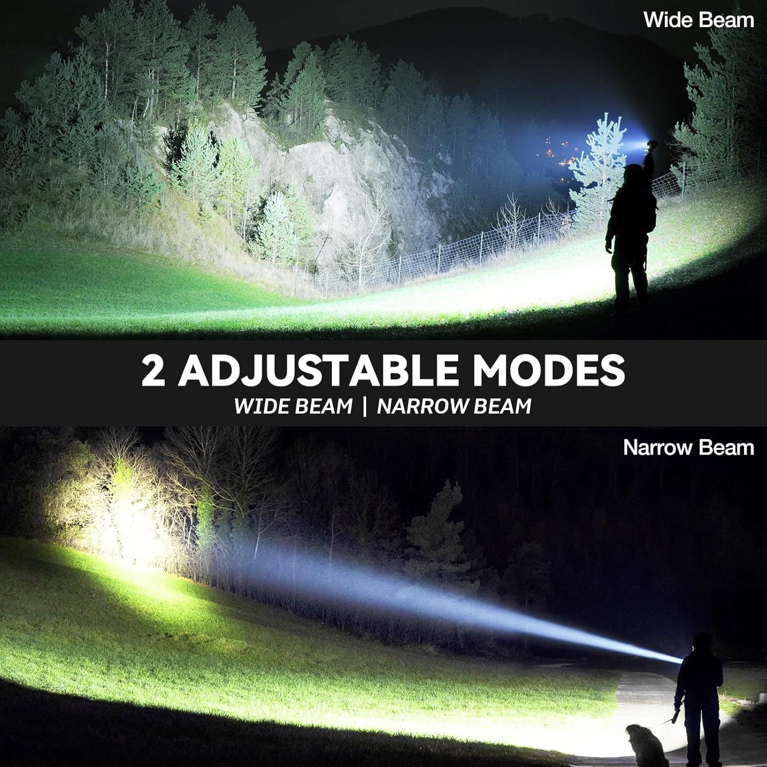 Adjustable Beam: You can adjust the head of the LED rechargeable flashlight to choose between wide-area illumination or long-range illumination. The narrow beam illuminates objects up to 3280 feet away and the wide beam illuminates a room up to 200 square meters.