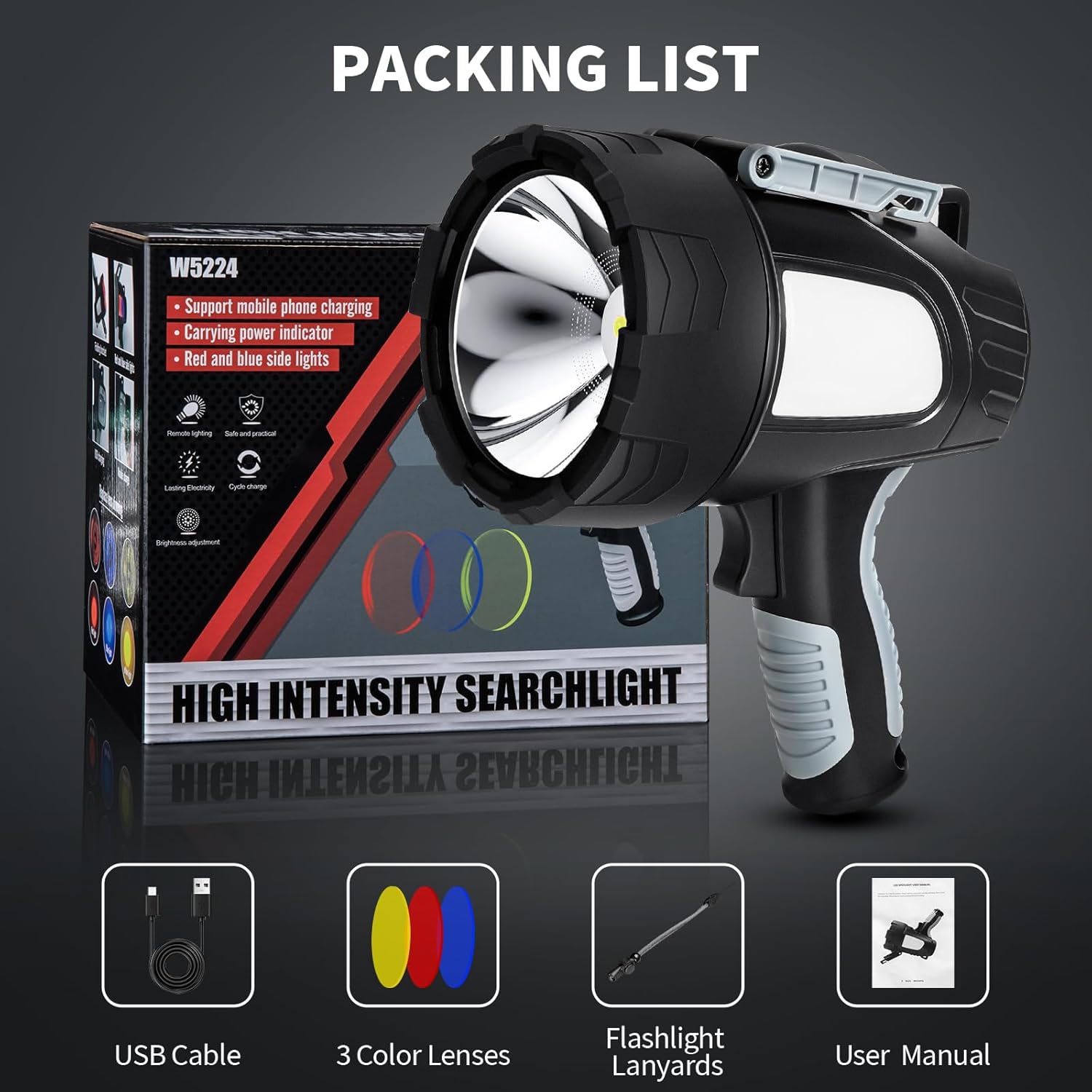 - 【Worry-Free After-Sales Service】 - Try it, you'll love upgraded W5224 spotlight! The rechargeable spotlight comes with lifetime customer service and technical support. We take customer experience very seriously, we carefully inspect each product before shipping and make sure it is working properly. If you have any questions about rechargeable spotlights, please contact our excellent customer support team within 24 hours to get the best solution, looking forward to your choice.