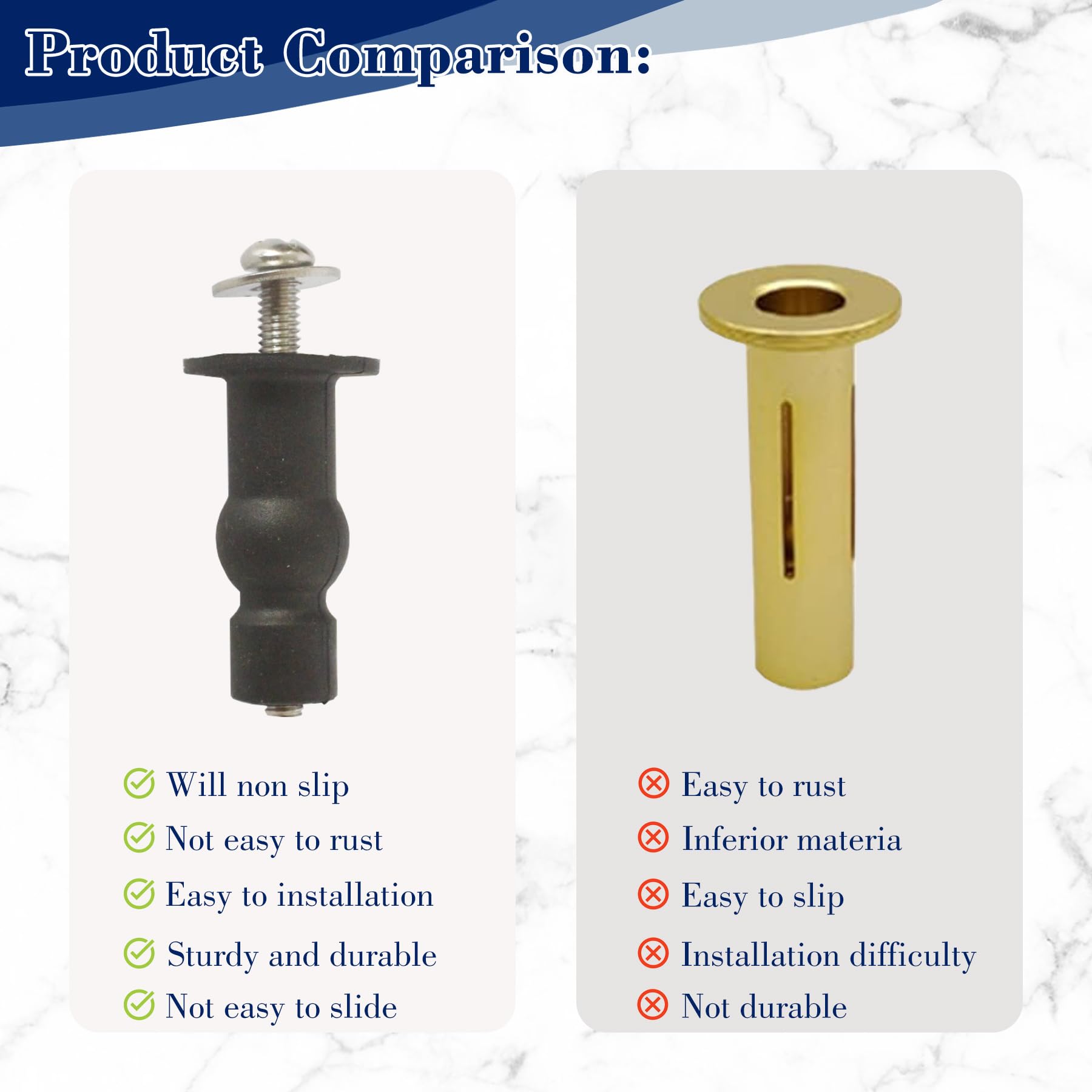 - High Quality Materials: Crafted from top-quality rubber materials.It made with strong metal hinges and bolts,these components resist wear and corrosion. These rubber toilet seat bolts provide great friction against the ceramic bowl holes therefore excellent grip compared to plastic,ensuring a long-lasting and smooth hinge operation for your toilet seat