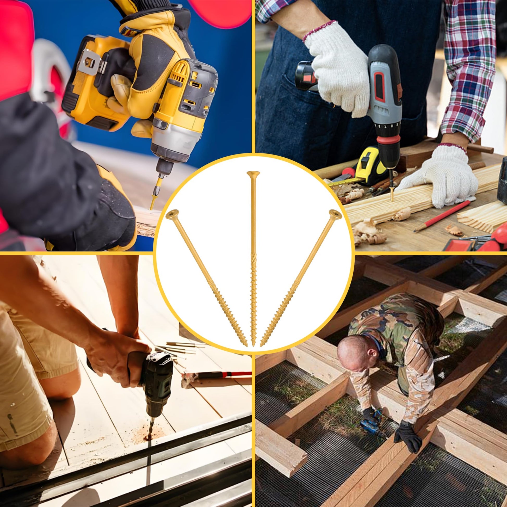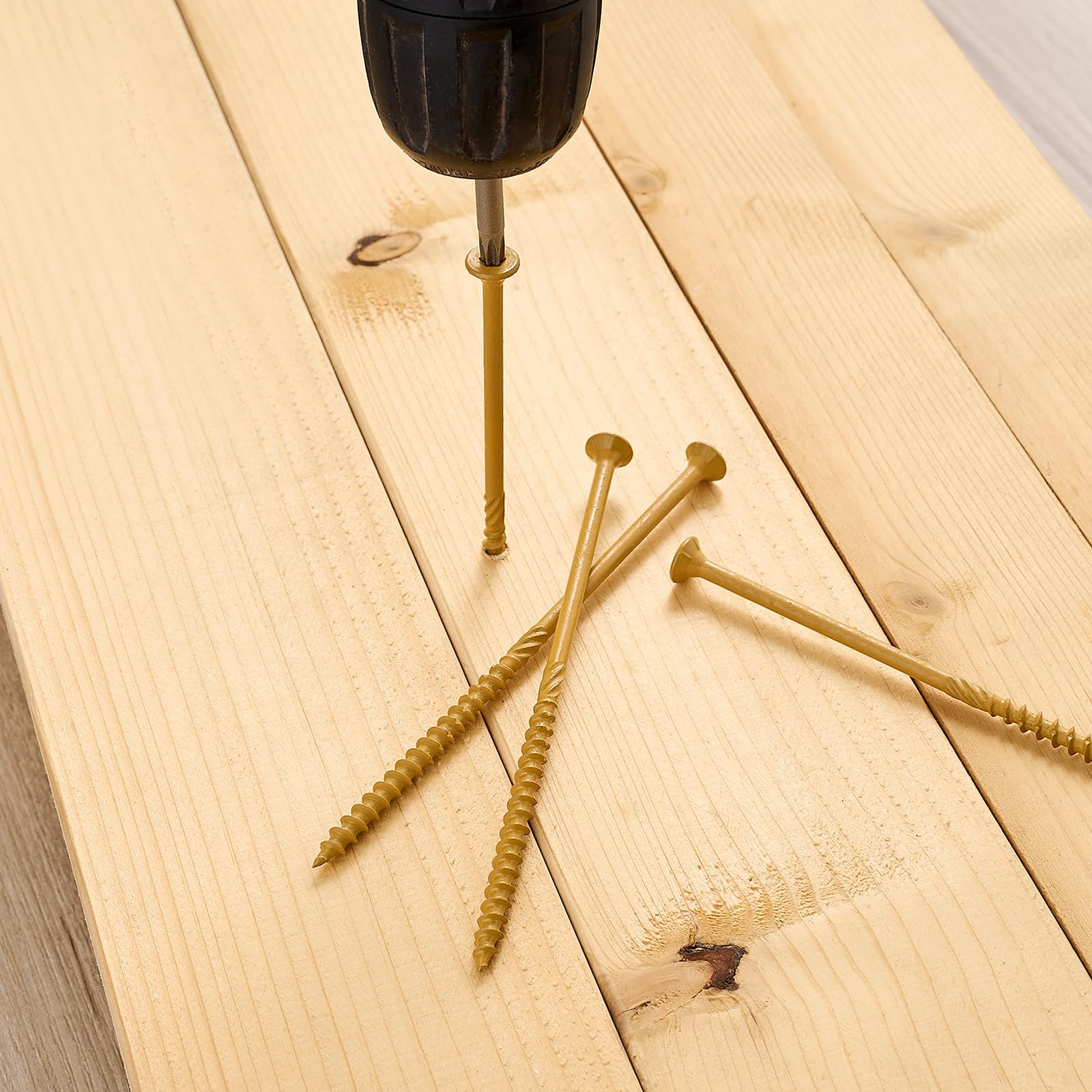 - SUPERIOR RUST RESISTANCE: 4-layer tan coating provides superior rust and corrosion protection. And these deck screws for exterior can be exposed to the sun, humidity, rain and snow condition for a long time.