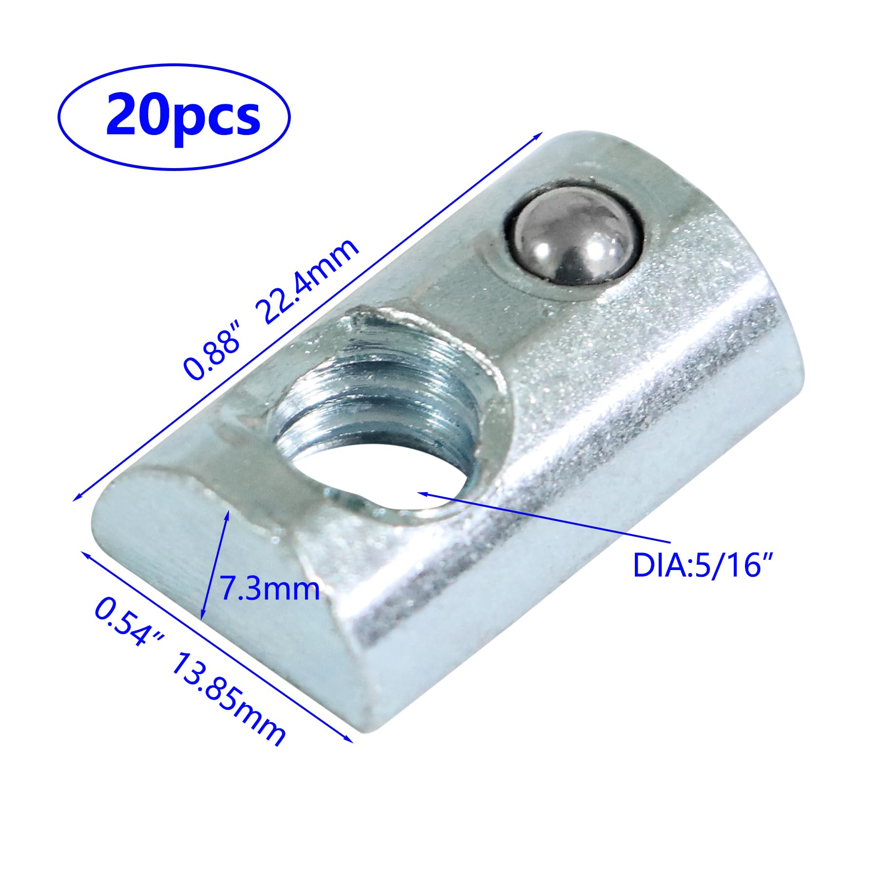 Abeicy 5/16”-18 Threaded Steel Roll in T-Nut with Ball Spring, T-Slot Nuts Accessory Hardwares for 15 or 40 Series Aluminum Extrusion Profiles Rail, 20 Packs