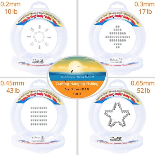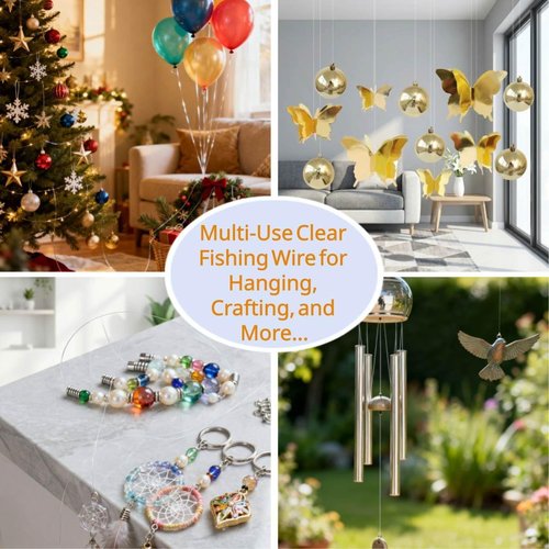 Aboda Clear Fishing Line for Crafts, Fishing Wire for Hanging – Strong, Versatile & Invisible String for Hanging Decorations Aboda Clear Fishing Wire is your go-to solution for fishing, crafting, beading, and decoration projects. Made from premium nylon, it offers exceptional strength (17–100 lbs), flexibility, and durability while remaining virtually invisible for seamless displays. Key Features: ✔ Ultra-Strong & Flexible Fishing Wire – Supports up to 100 lbs, perfect for hanging decorations, crafting, or jewelry making. ✔ Nearly Invisible String – Transparent monofilament blends effortlessly into any background. ✔ Multipurpose Use Fishing Line– Ideal for fishing, balloon garlands, holiday décor, beading, sewing, and more. ✔ Convenient Value Pack – Includes a plastic spool for easy storage and crimp sleeves for quick and secure tying Perfect for parties, weddings, holidays, and crafts projects, Aboda Clear Fishing Wire ensures secure, elegant, and hassle-free decorating. Get yours today!