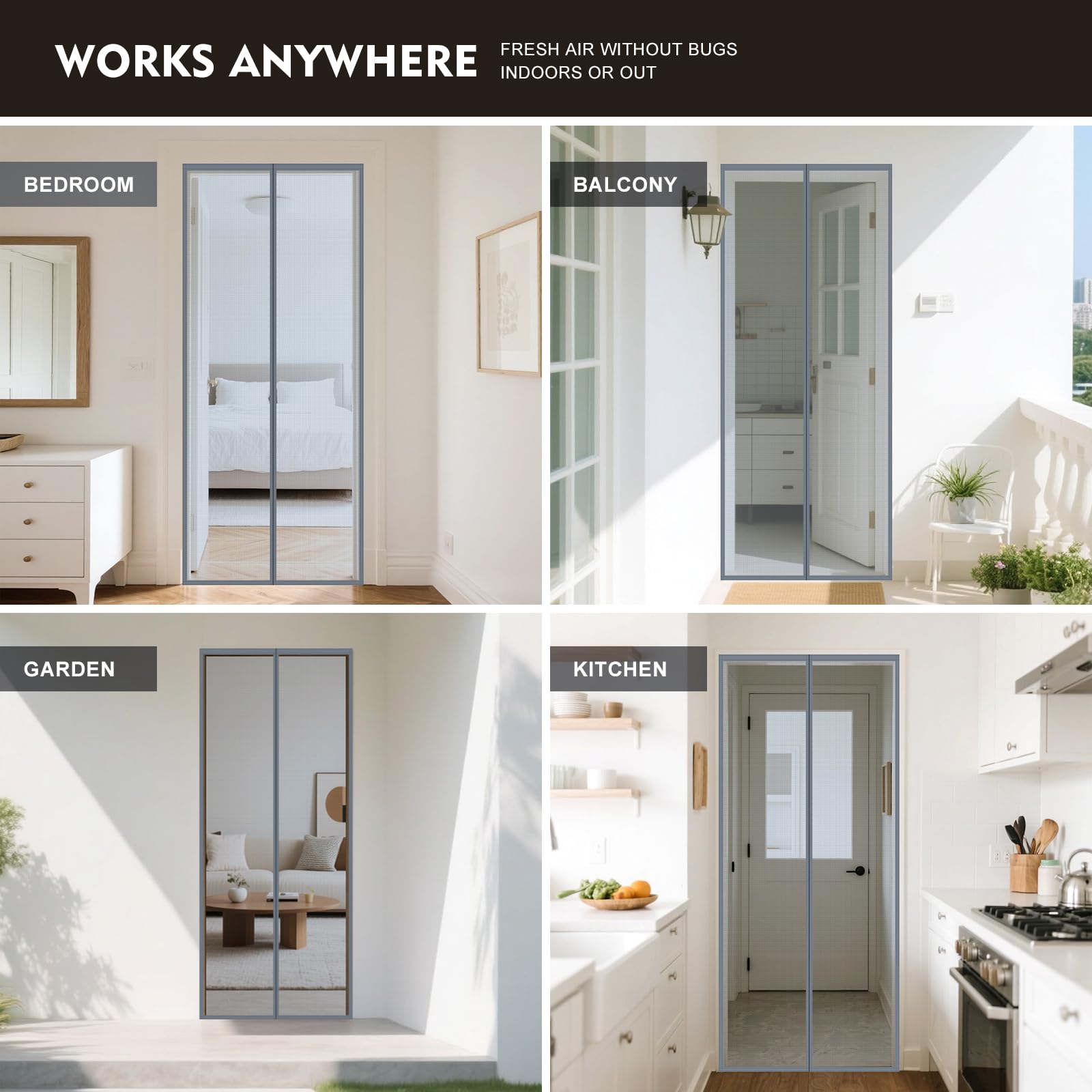 - BUG-FREE VENTILATION:Self-sealing magnets create an instant barrier against insects while letting fresh air flow through the durable mesh