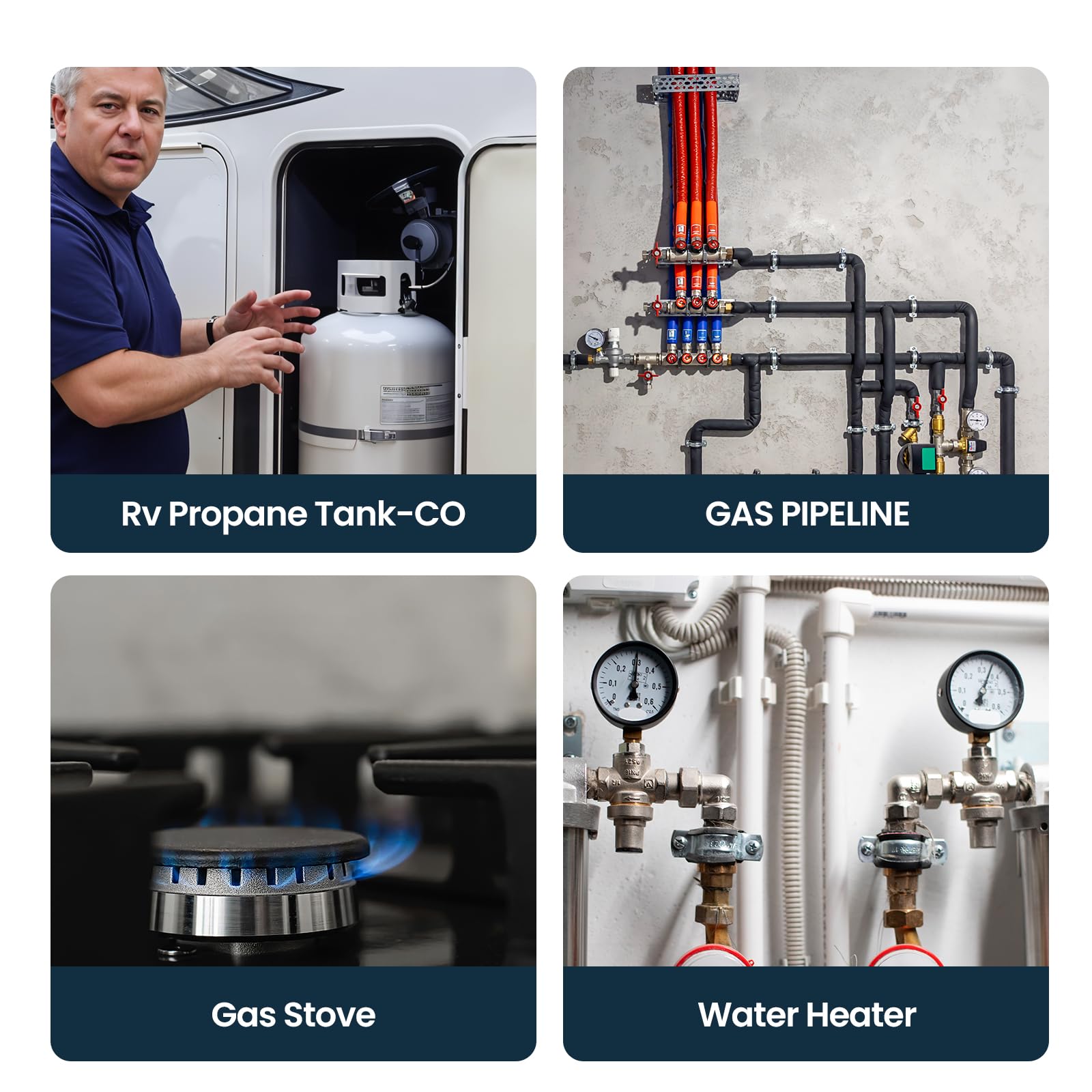 - The gas sensor detector is placed with a belt clip to connect to clothing when inspecting, working and assessing a confined space. It is used for personal protection. If any of the 4 gas pass the alarm preset levels, 4 gas meter warn the user through Warning light, vibration and 120 db buzzer alarm. Equipped with high-capacity rechargeable battery provides up to 10 hours of continuous operation on a single charge
