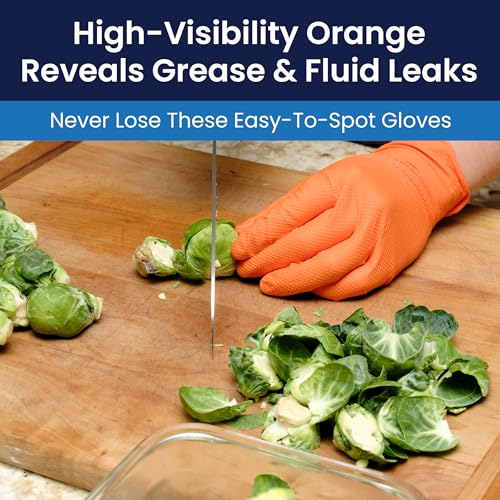 - High Visibility Disposable Gloves: The vibrant orange color of these disposable nitrile gloves increases hand visibility at the workplace to help enhance safety