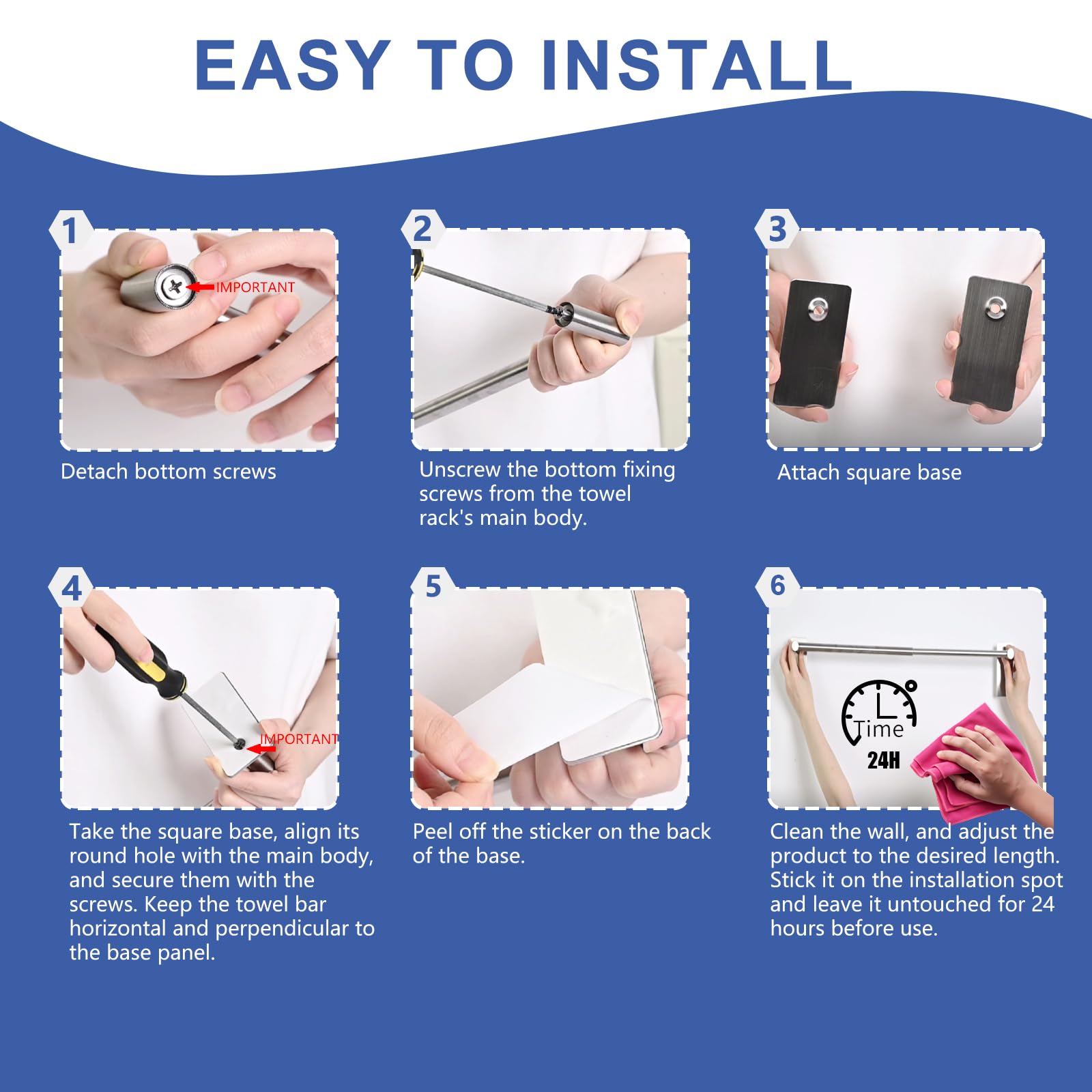 - Modern And Stylish Design: The Towel Bar Features a Sleek And Modern Design With Concealed Screws. It Not Only Covers Old Holes But Also Allows For Adjustable Installation Angles And Lengths, Ensuring a Clean And Stylish Appearance On Your Wall.