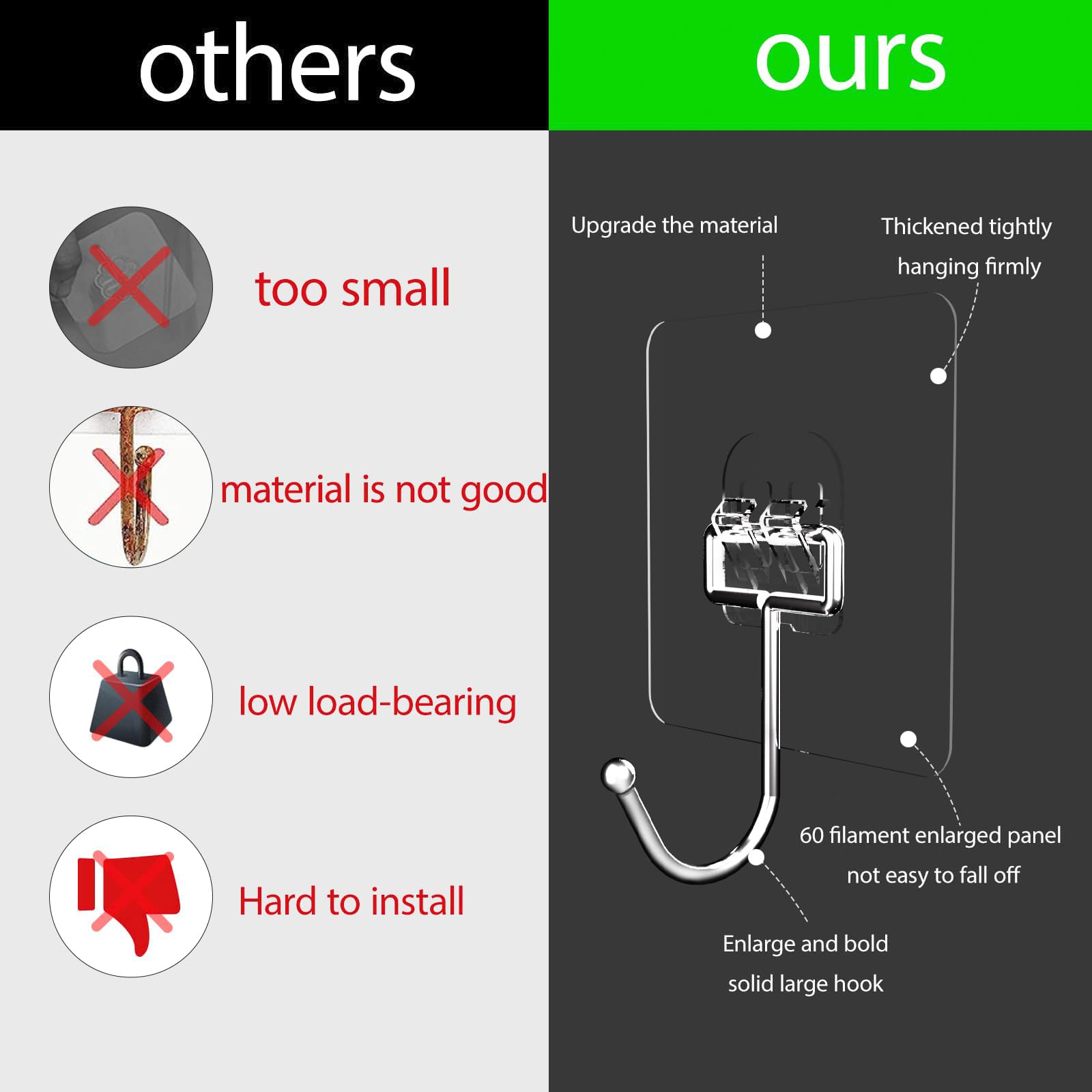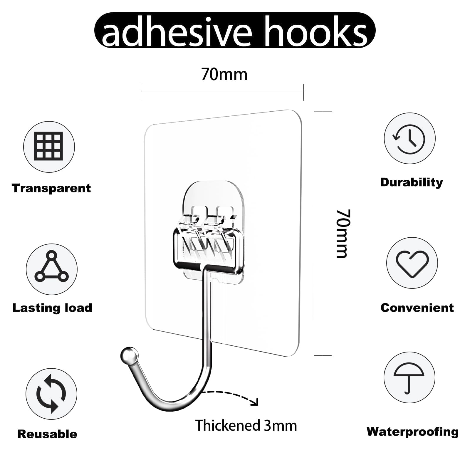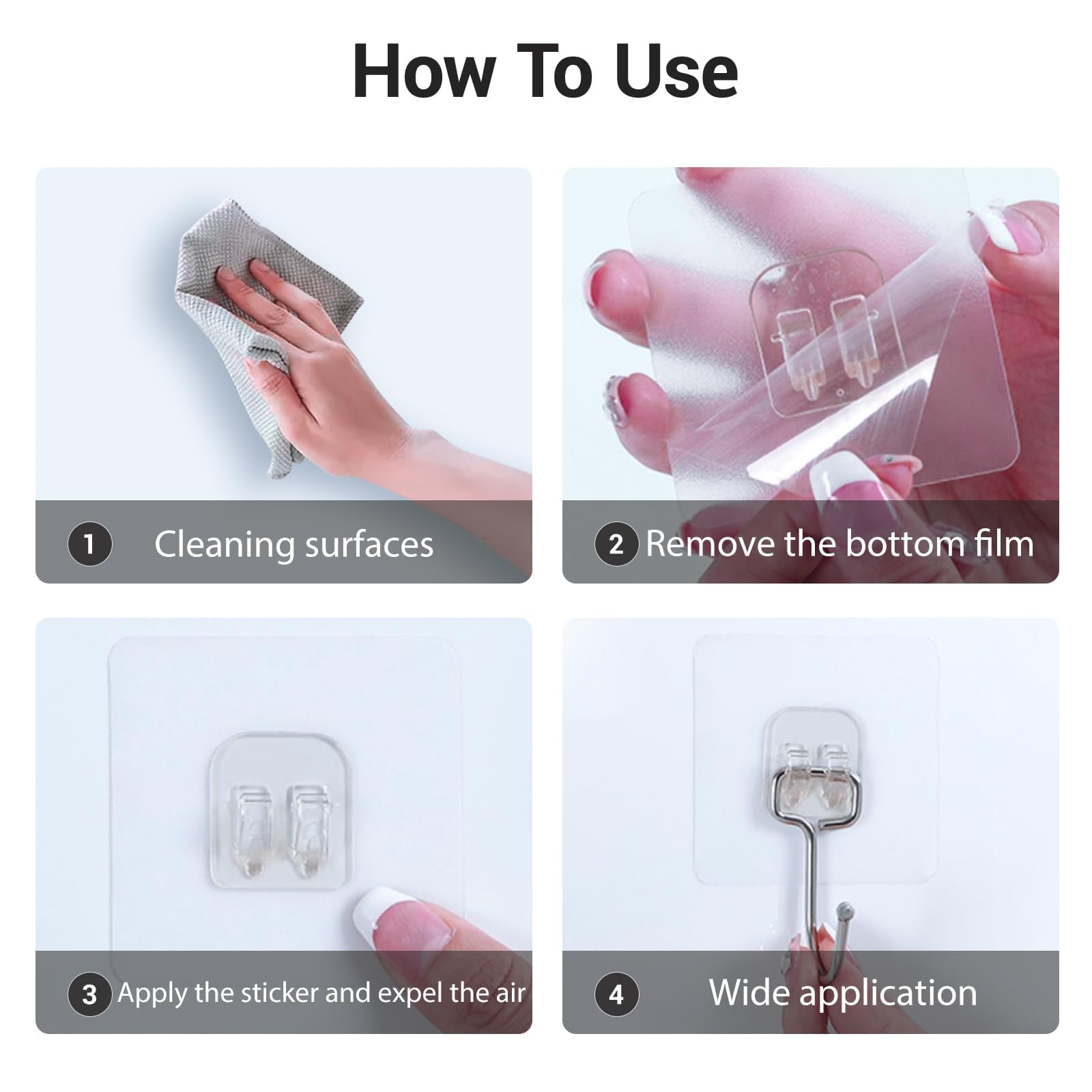 - UTILITY HOOKS: Transparent design seamlessly blends with diverse home decor styles. Highly practical for home use. Compact and lightweight. Do not use on painted walls