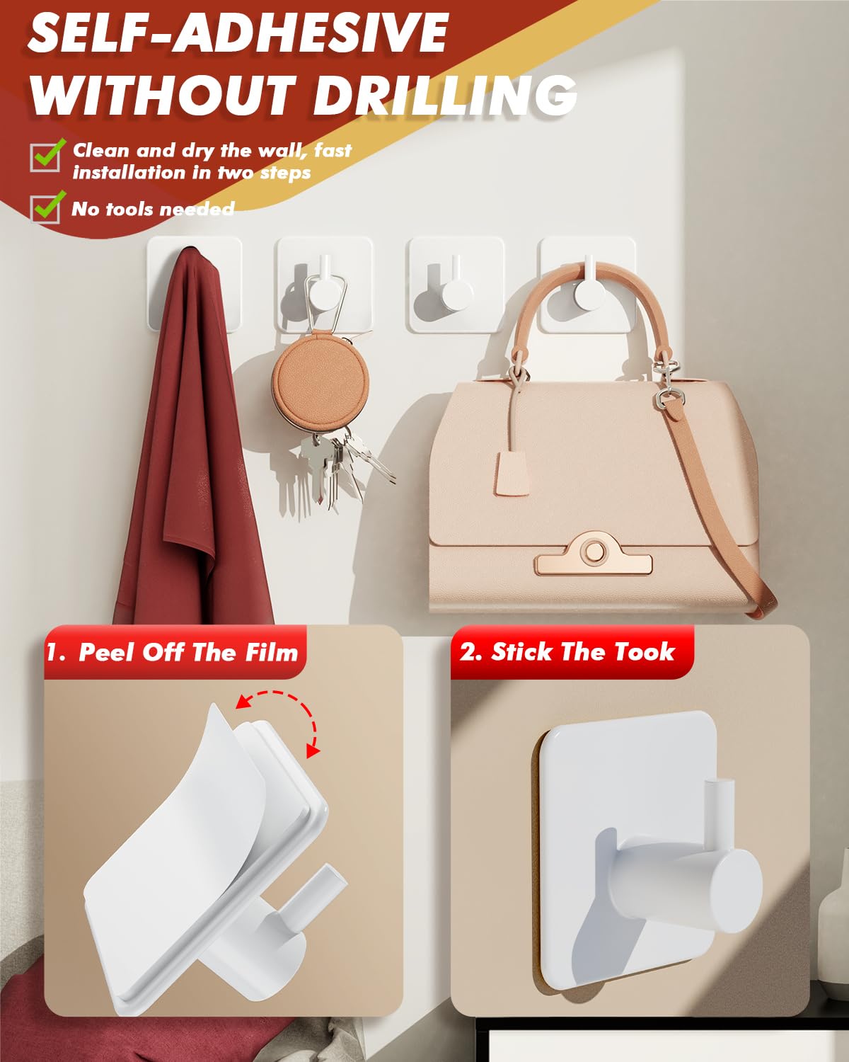 - 𝐒𝐓𝐑𝐎𝐍𝐆 𝐀𝐍𝐃 𝐄𝐀𝐒𝐘 𝐓𝐎 𝐈𝐍𝐒𝐓𝐀𝐋𝐋 - With the strong adhesive pad on the back(you can heat the adhesive pad with a hairdryer before installation for a better adhesion effect), these adhesive towel hooks can be easily installed on smooth surfaces, eliminating the need for drilling or damaging walls. The modern design and fashionable white color not only complement various home decor styles but also save space and keep rooms clean and tidy, making them a perfect addition to foyers, kitchens, hallways, bedrooms, and closets.