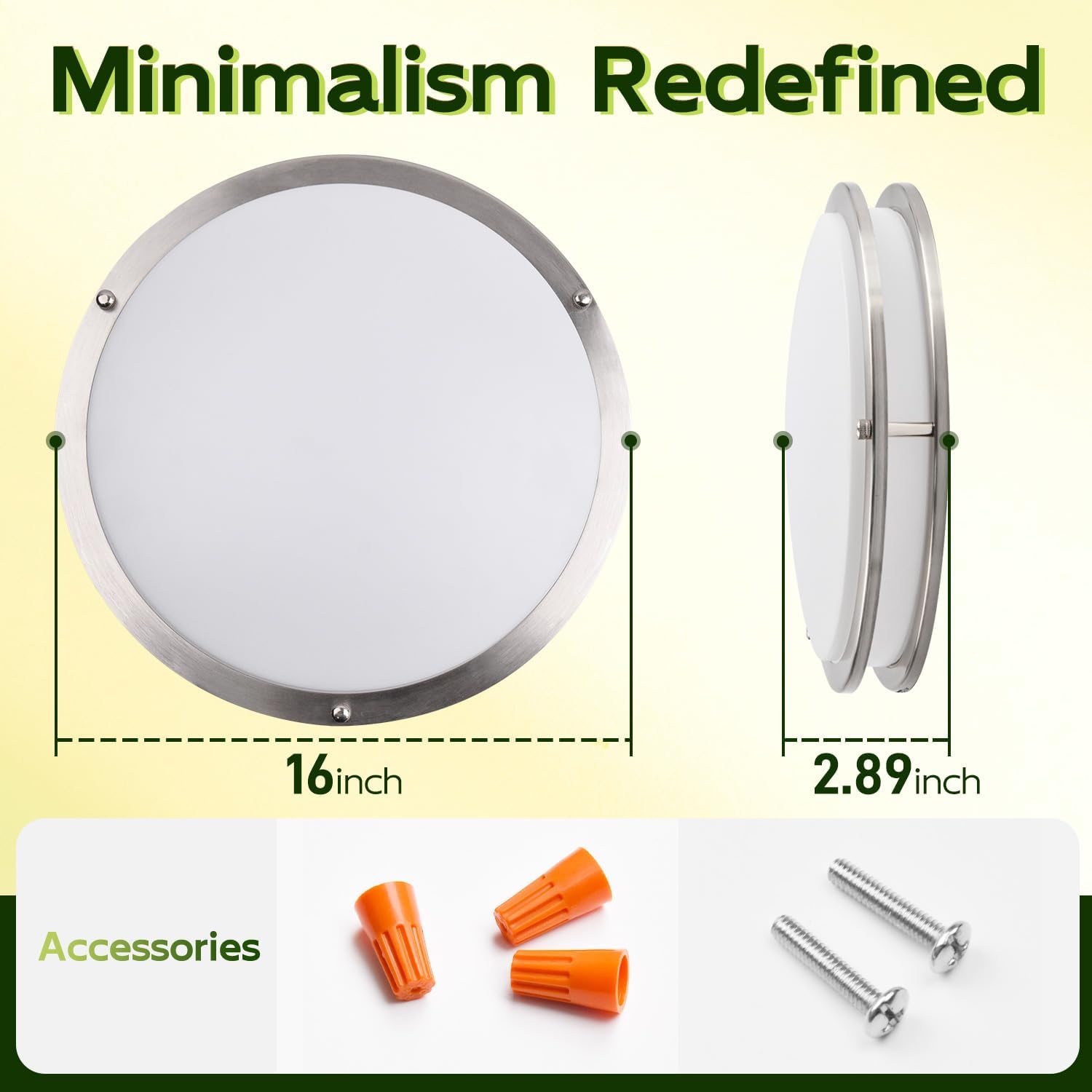 - HIGH PERFORMANCE - This modern light fixtures easily mounts flush with the ceiling, and the low profile design keeps it out of the way of closet doors. The protective brushed nickel finish will look great for years to come, and the white lens diffuses the LED light evenly. You won't see any dark spots or shadows.