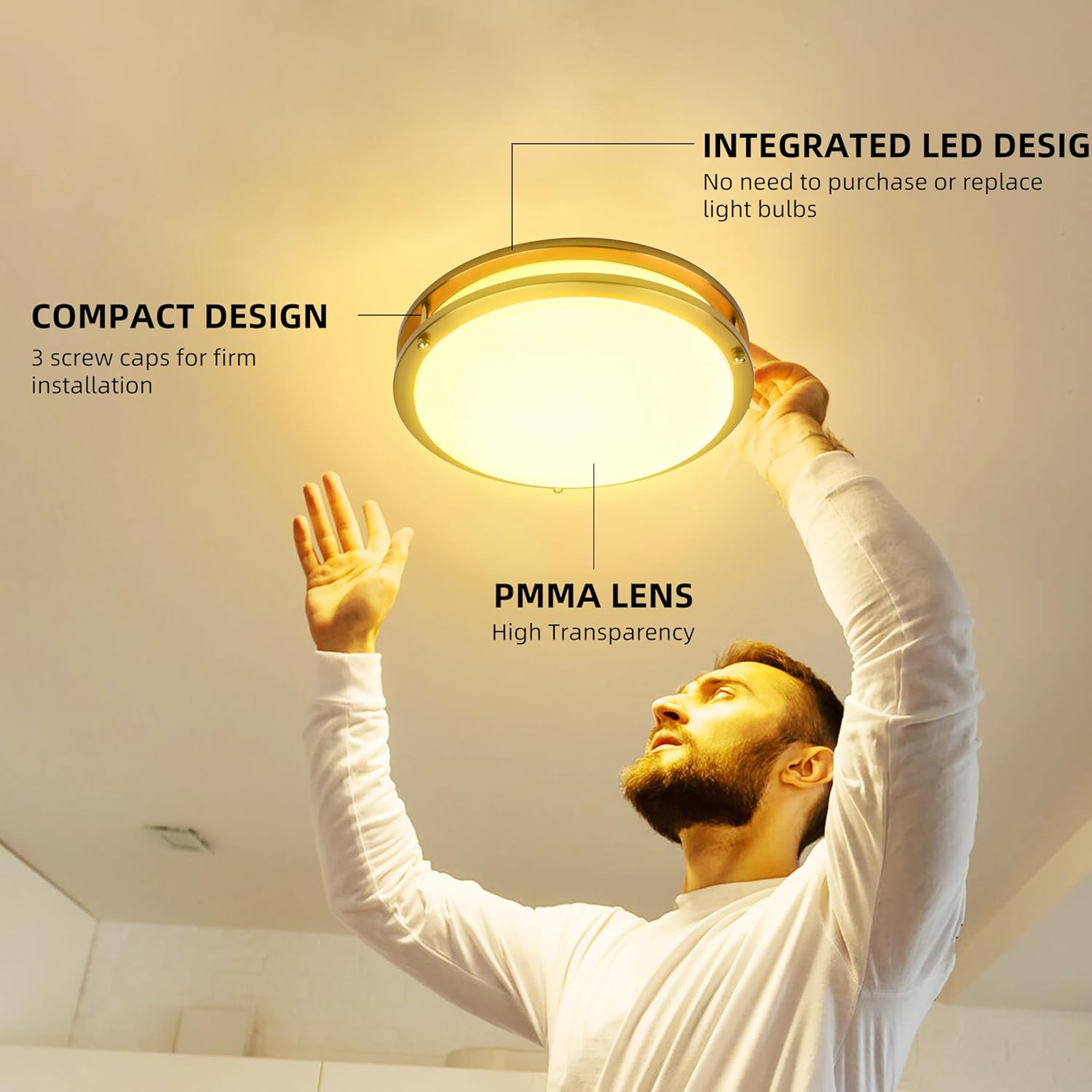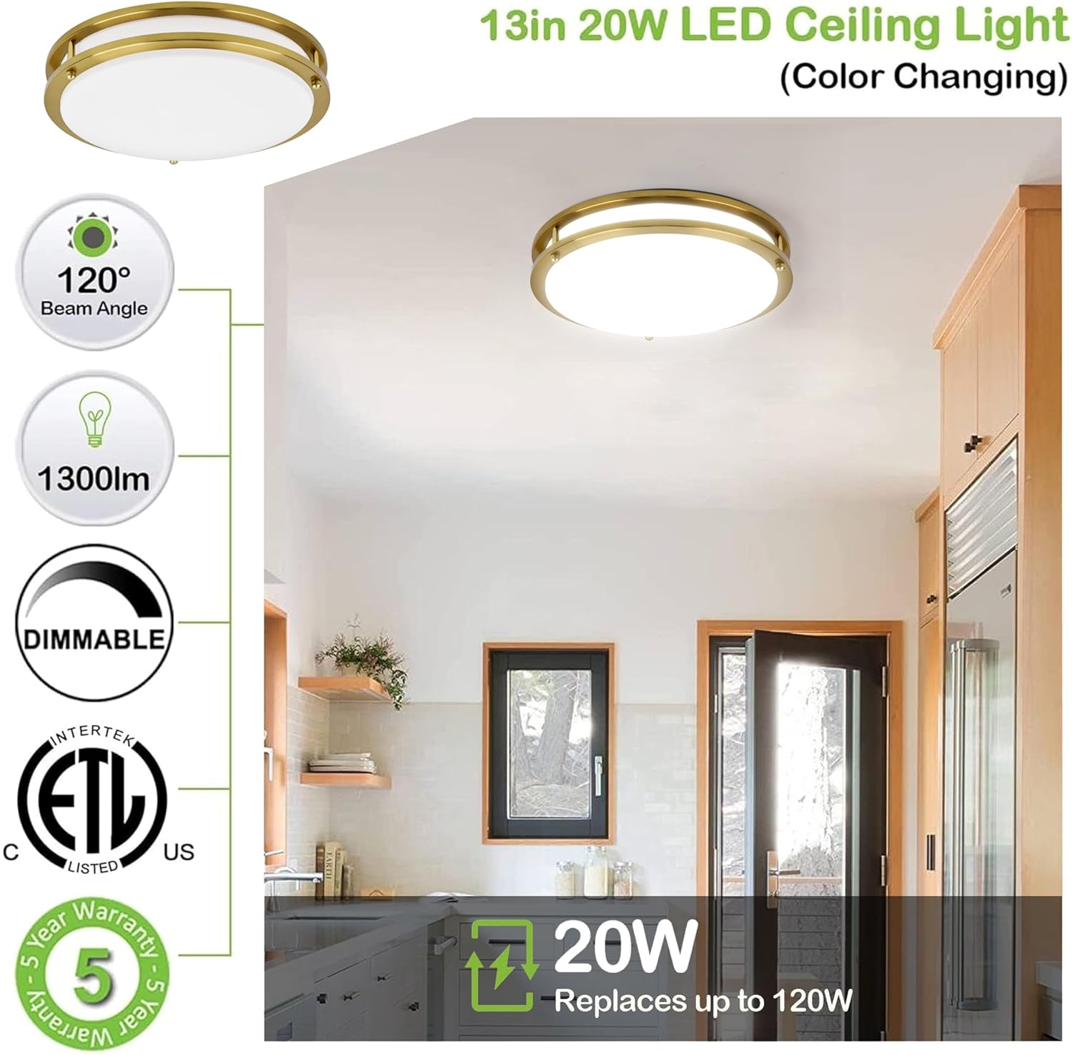 Adjustable 13-Inch Gold LED Flush Mount Ceiling Light Fixture - Dimmable 2700K-5000K for Hallway, Bathroom & Kitchen (2-Pack)