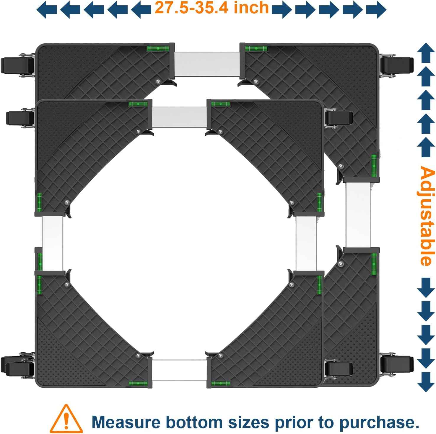 Adjustable Mobile Fridge Stand with 8 Locking Wheels & 4 Strong Feet - 27.5” to 35.4” Washer Dryer Dolly (Black)