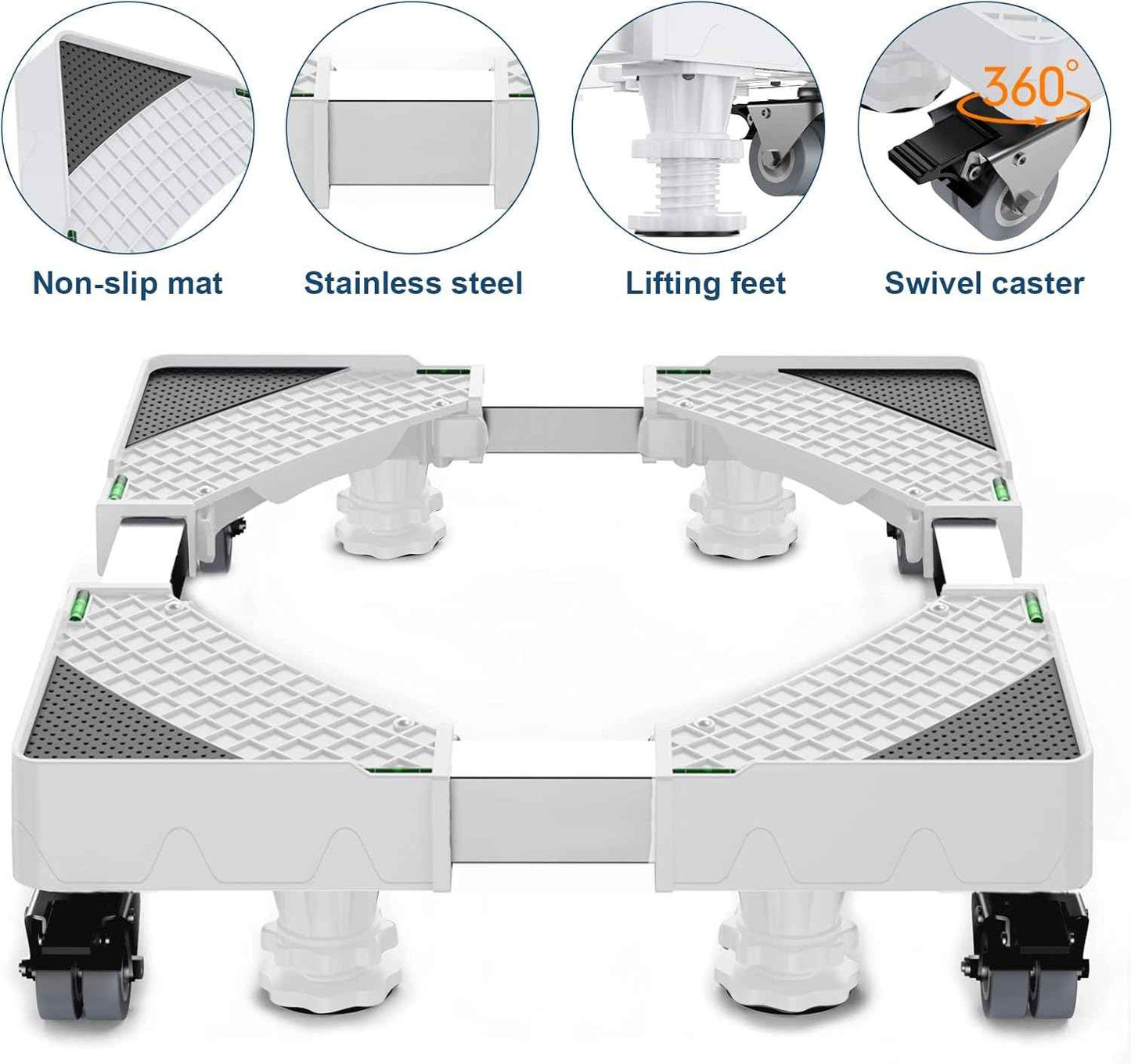 - [ WIDE APPLICATION ] The moving roller is suitable for the bottom of portable washers, dryers, refrigerators and more. The refrigerator stand can easily hold any weight up to 1100 lbs.More wheels for stability and weight, making it easier to move furniture