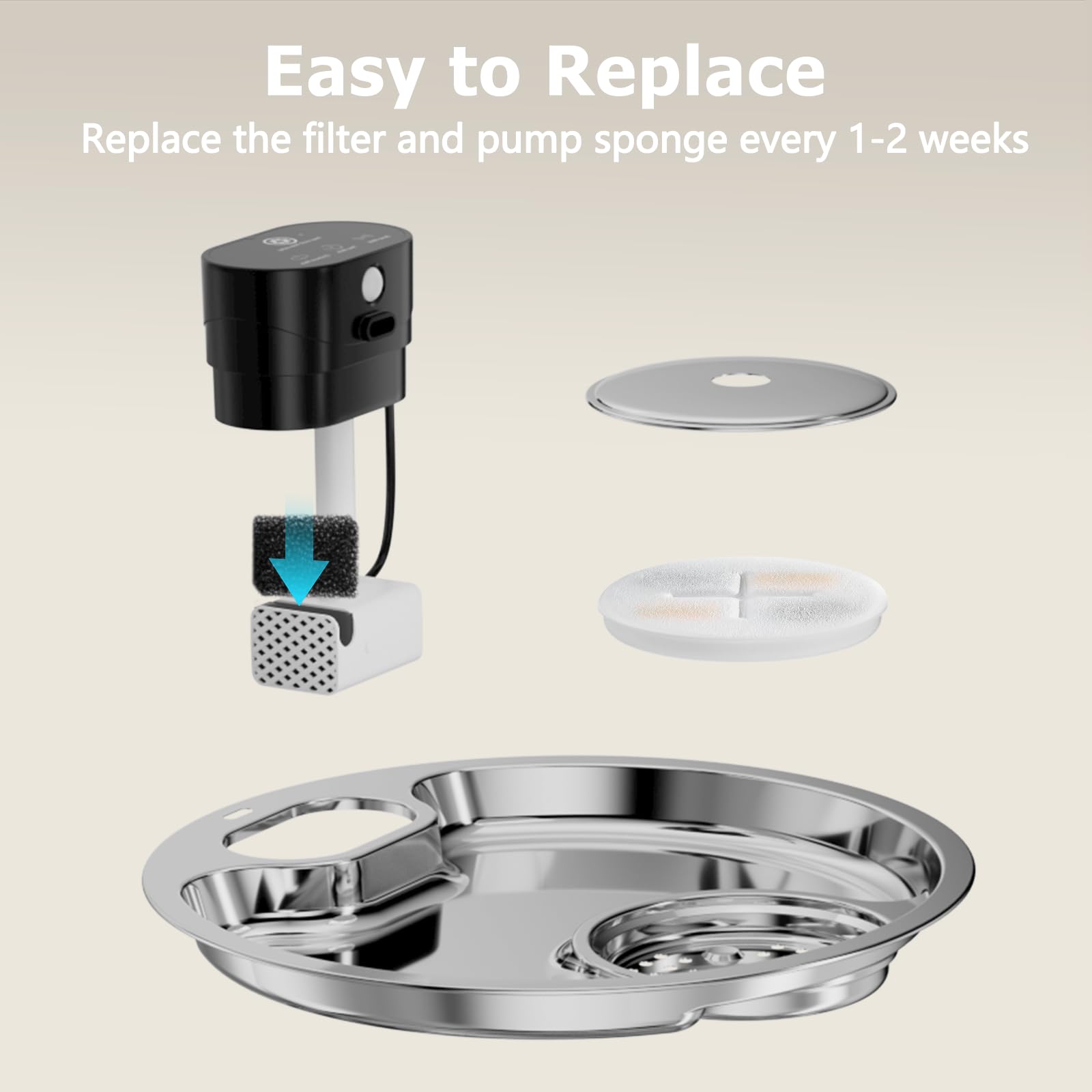 - š BONUS: 6 SPONGE FILTERS FOR PUMP PROTECTION This set includes 6 replacement foam filters for the pump inlet. These sponges catch large debris and pet hair before it reaches the motor, helping prevent clogging and prolonging the life of your fountain.