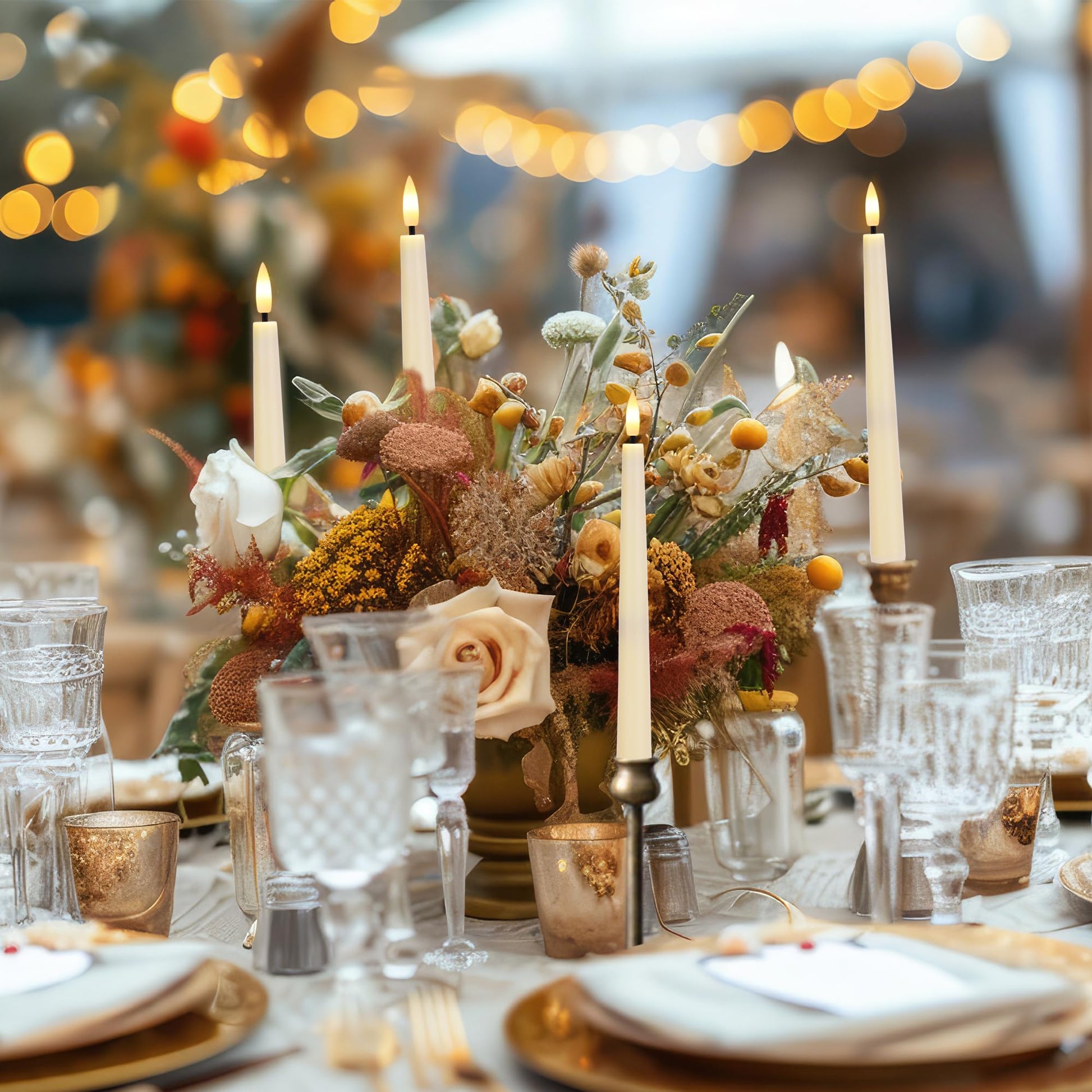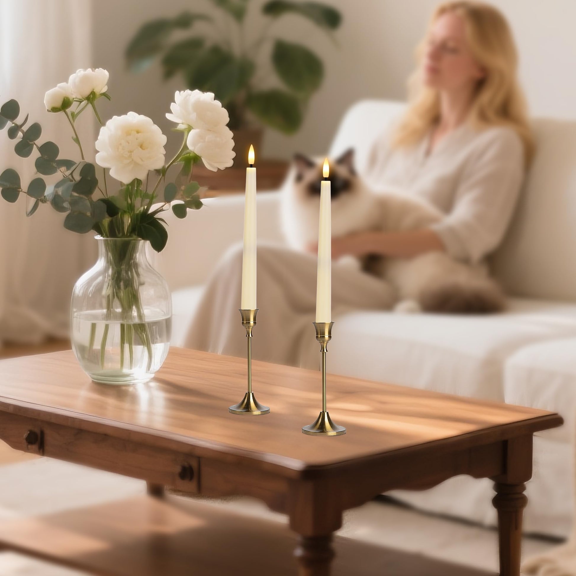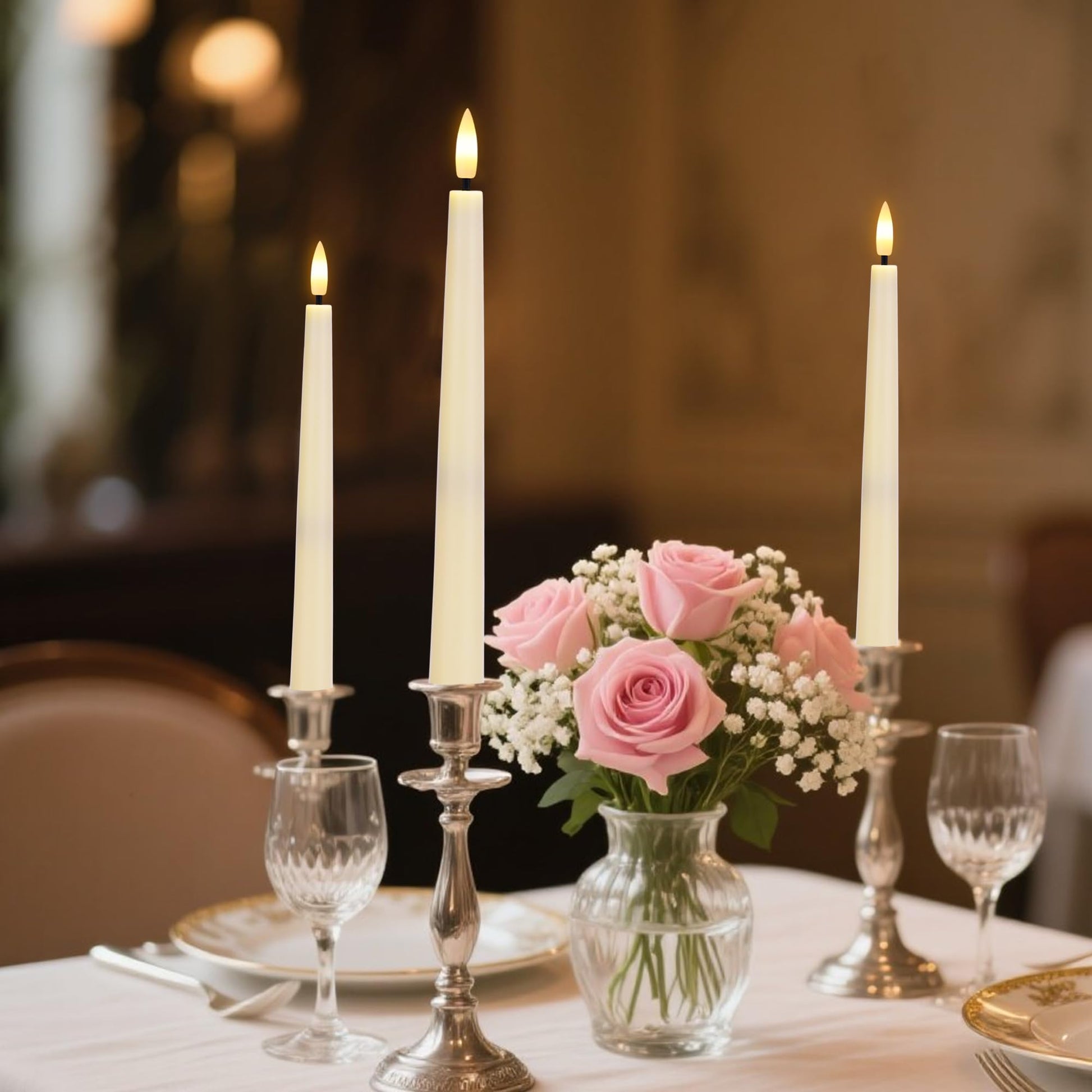 - 𝐄𝐥𝐞𝐠𝐚𝐧𝐭 𝐋𝐨𝐨𝐤 & 𝐑𝐞𝐚𝐥𝐢𝐬𝐭𝐢𝐜 𝐅𝐥𝐚𝐦𝐞: Our flameless taper candles are crafted with a frosted finish that replicates the classic look of traditional candles. The lifelike 3D wicks emit a soft, warm glow that beautifully mimics real candlelight, creating a cozy and romantic atmosphere. Flameless candlesticks are perfect for timeless everyday decor or festive celebrations