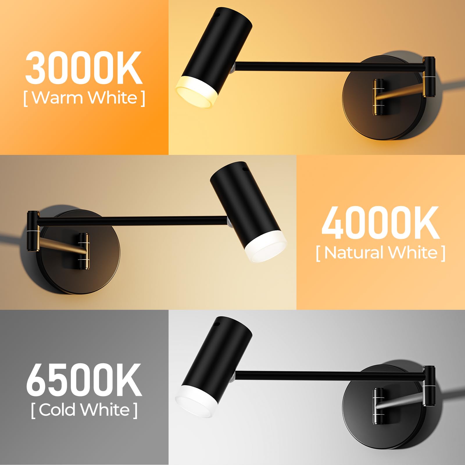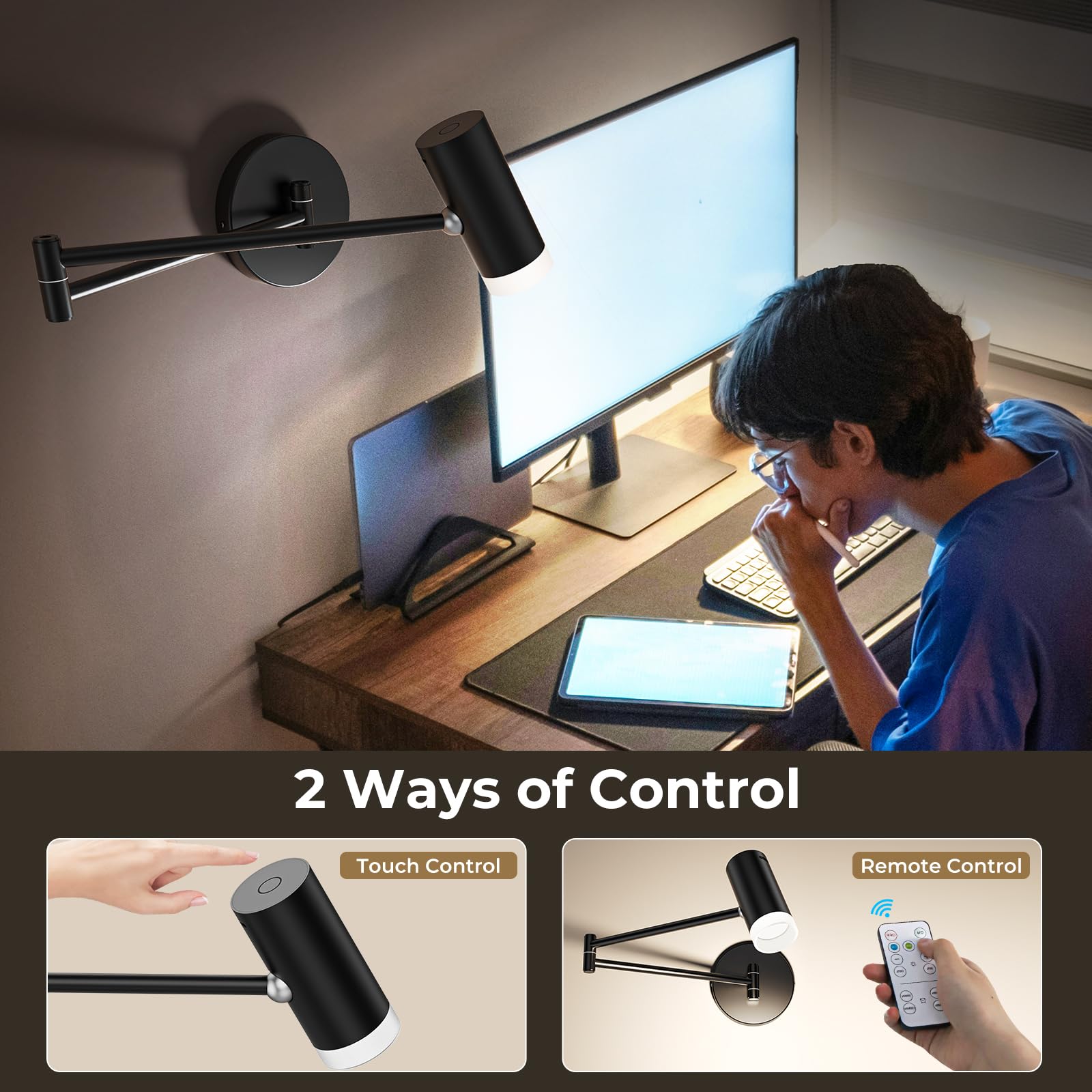 - [Large Capacity Battery] The swing arm wall lamp has a built-in large-capacity rechargeable battery with a Type-C charging port, fully charged in 3 hours. Wireless connection, not limited by power supply. Get rid of plug-in and hard wire.