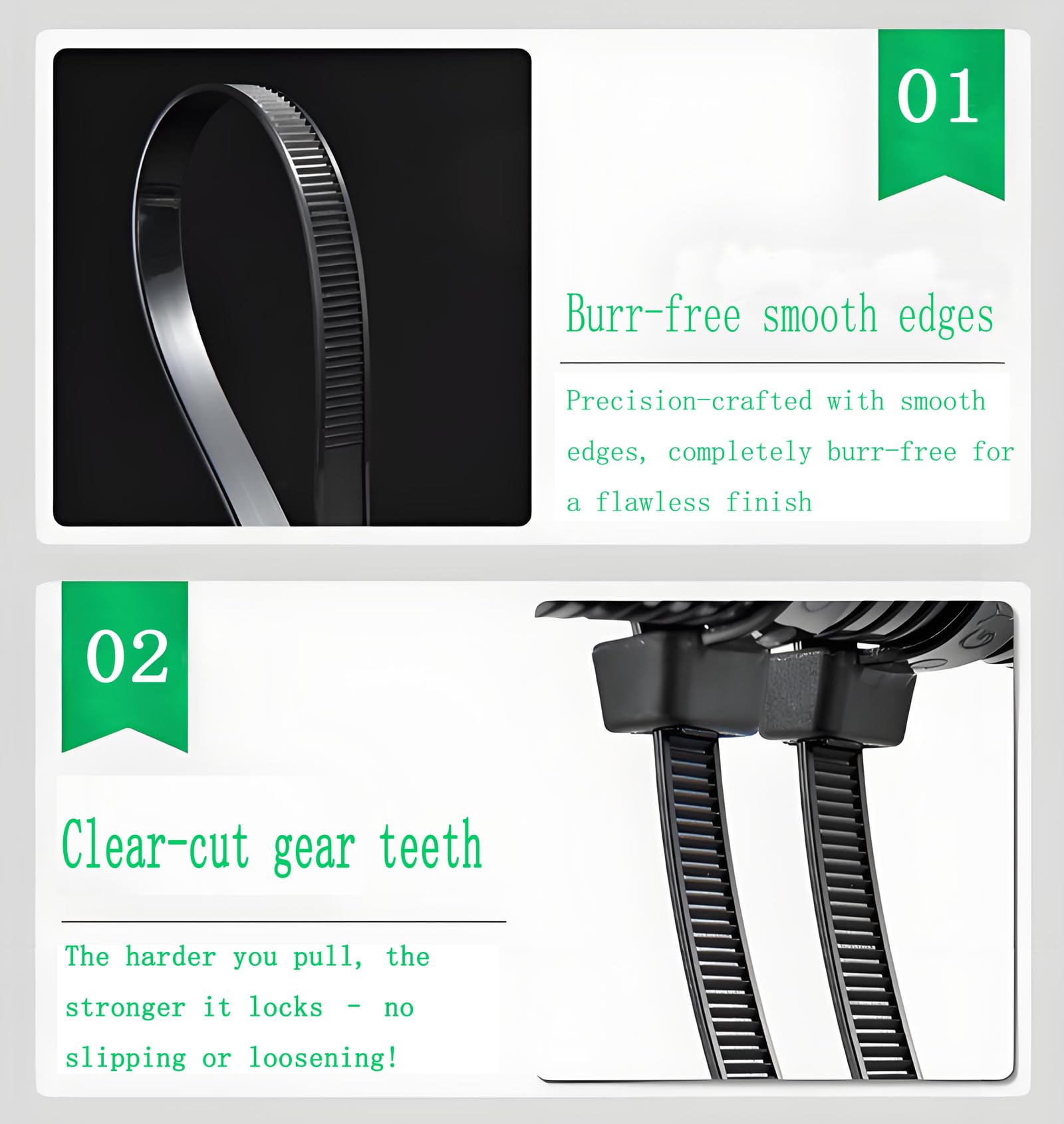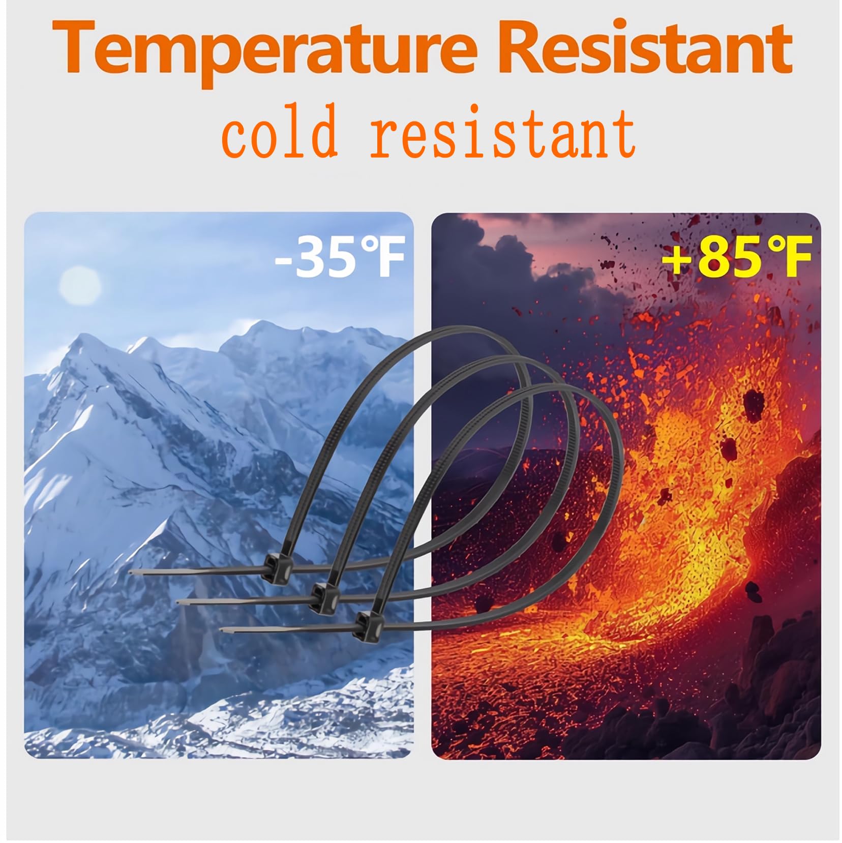 Weather Resistant: Designed to perform in extreme conditions, these cable ties are resistant to temperatures ranging from -45℉ to 185℉, making them perfect for both indoor and outdoor use.
