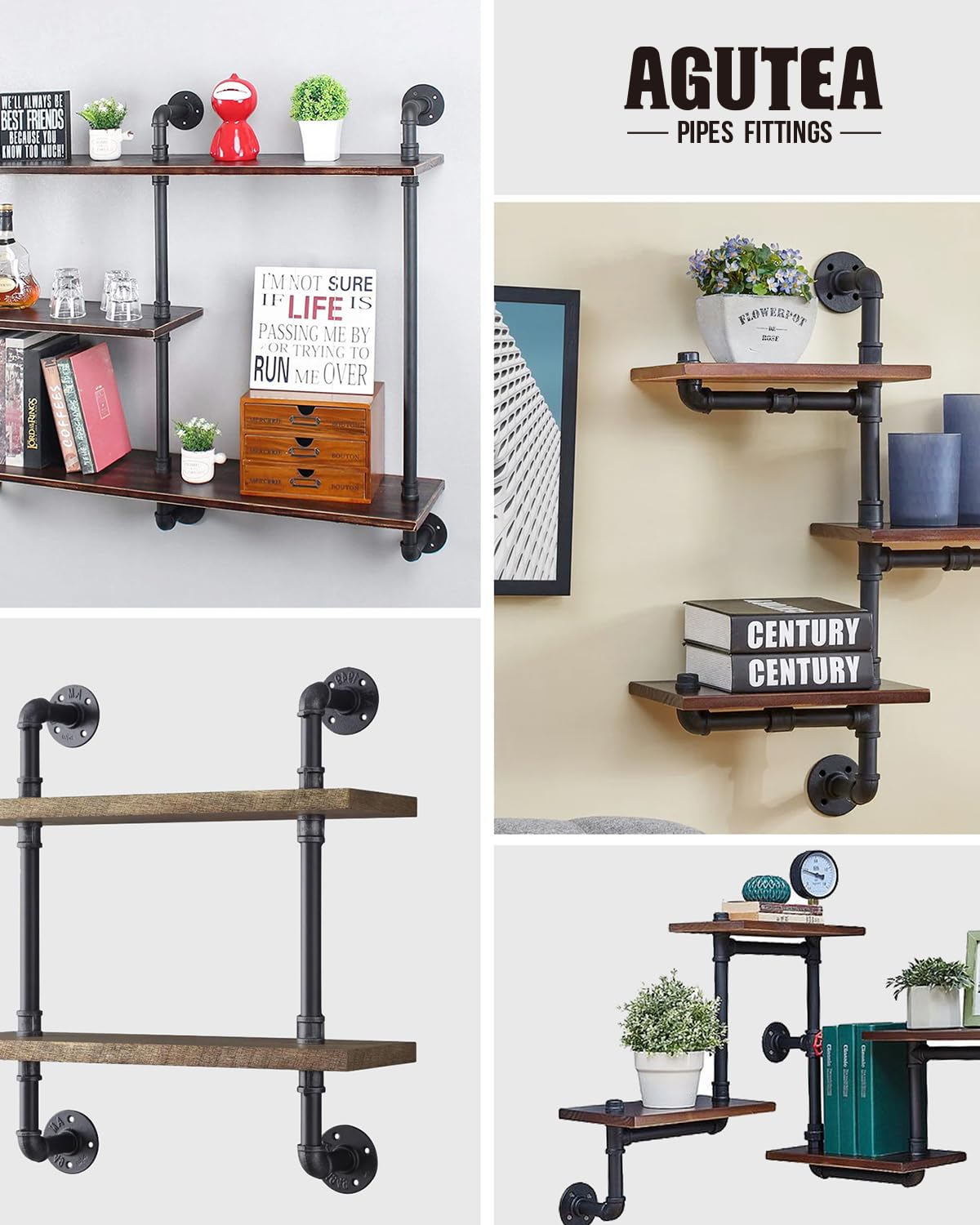 AGUTEA Black Durable U-Clamps Metal Pipe Clamps Double Hole Double Hole Pipe Strap DIY U-Bracket (Pack of 6) (1/2 INCH)