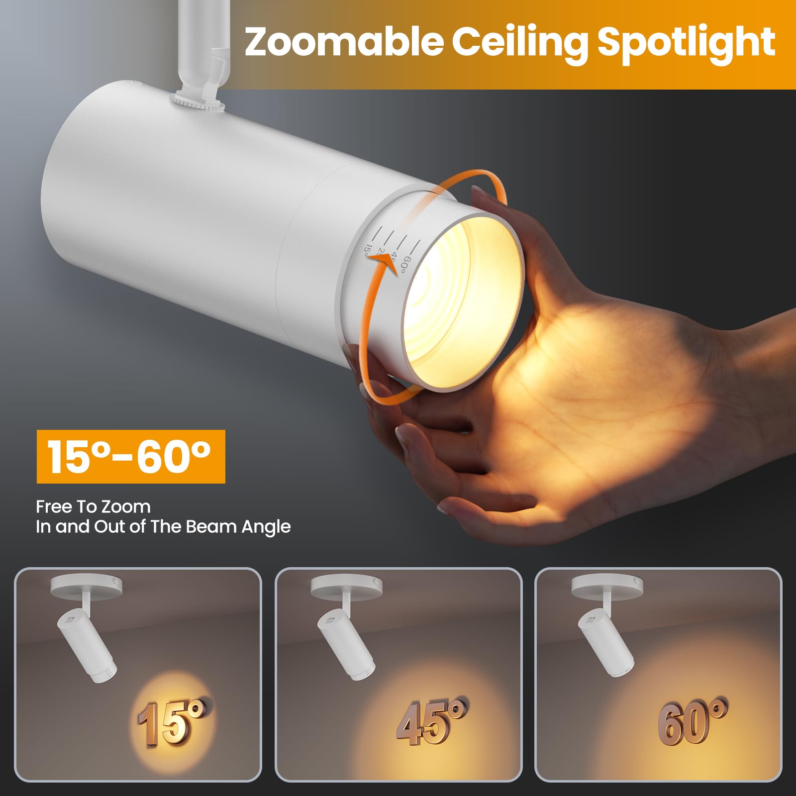 - Zoomable: AIBISOD white ceiling spotlight with zoomable option, the unique zoom allows the beam angle to be varied between 15 and 60 degrees, making this zoomable ceiling spotlight highly versatile