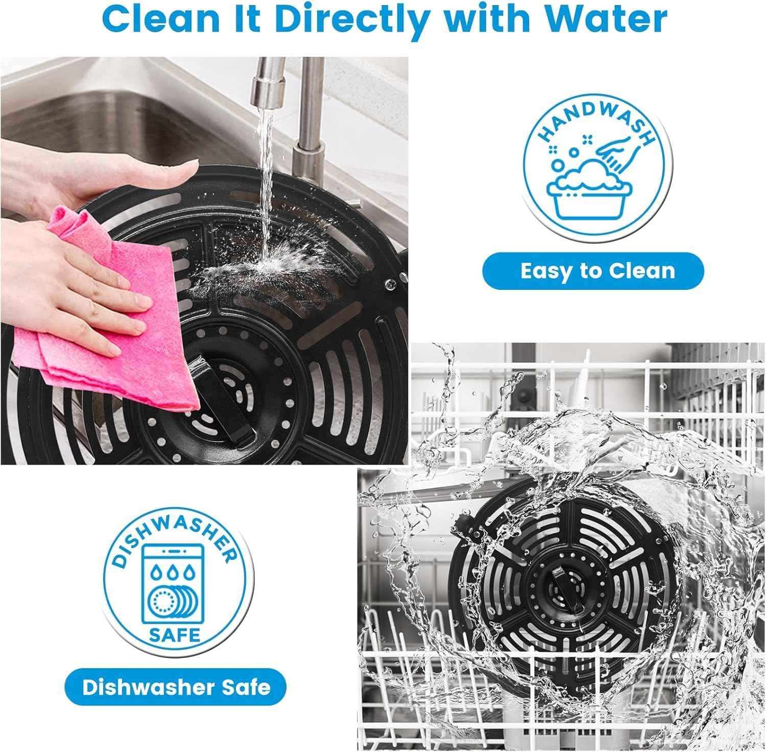 - Dishwasher Safe: The surface of the air fryer replacement grill pan is Teflon non-stick coating, easy to clean by dishwasher, solve tedious cleaning problems easily