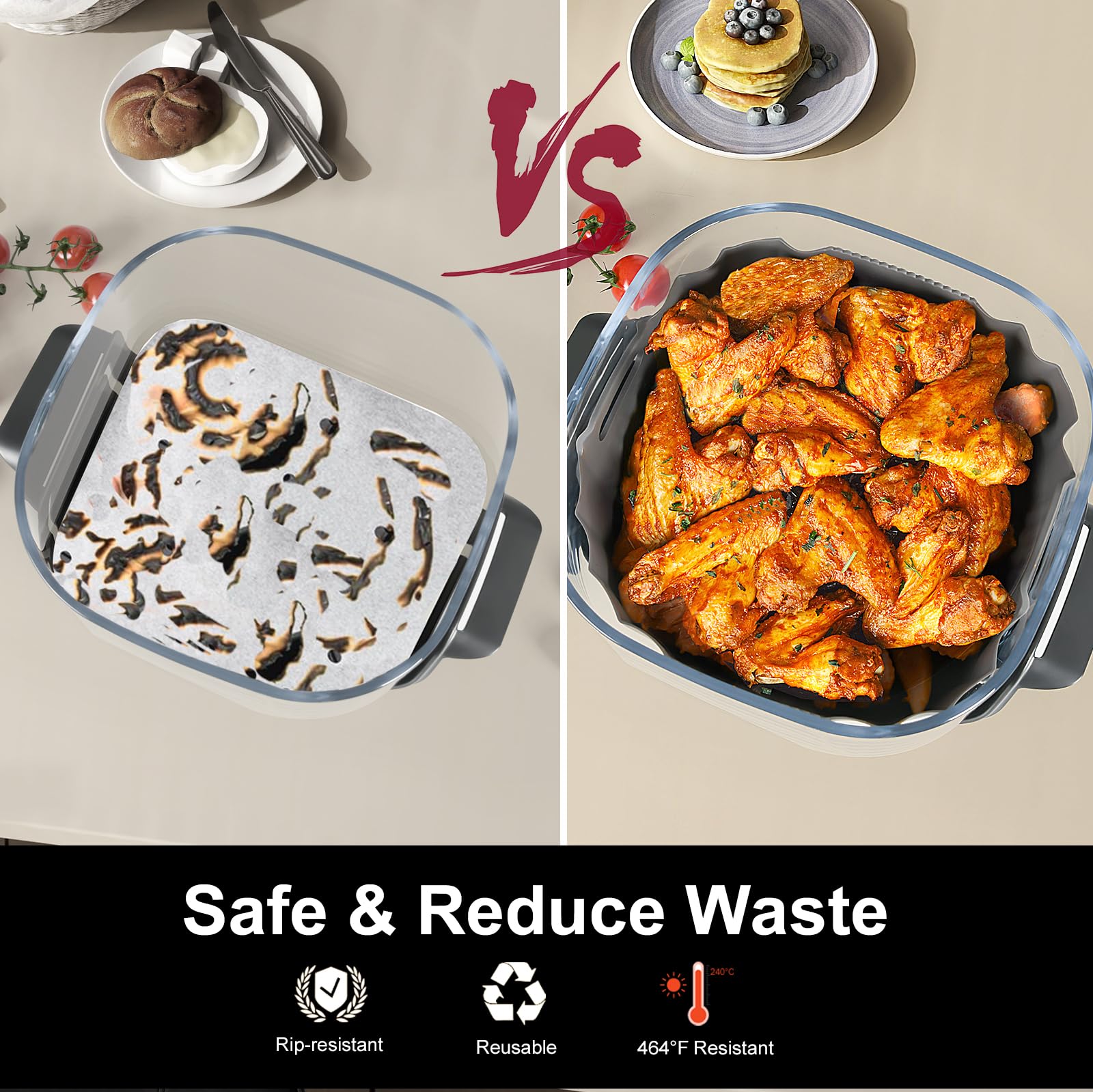 Air Fryer Liners for Ninja Crispi: Silicone Liners 2pcs Ninja Airfryer Accessories - Food Grade | Dishwasher-safe | for 4-qt & 6-cup Glass Container