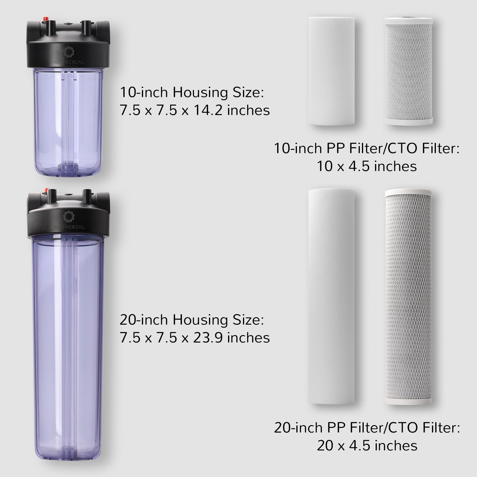 Airthereal Whole House Water Filter Clear Housing, 10" x 4.5" Sediment Carbon Cartridge Universal Housing, Pre-Filtration System for Well and City Water, 3/4" NPT Port, Includes 1-Pack CTO Filter