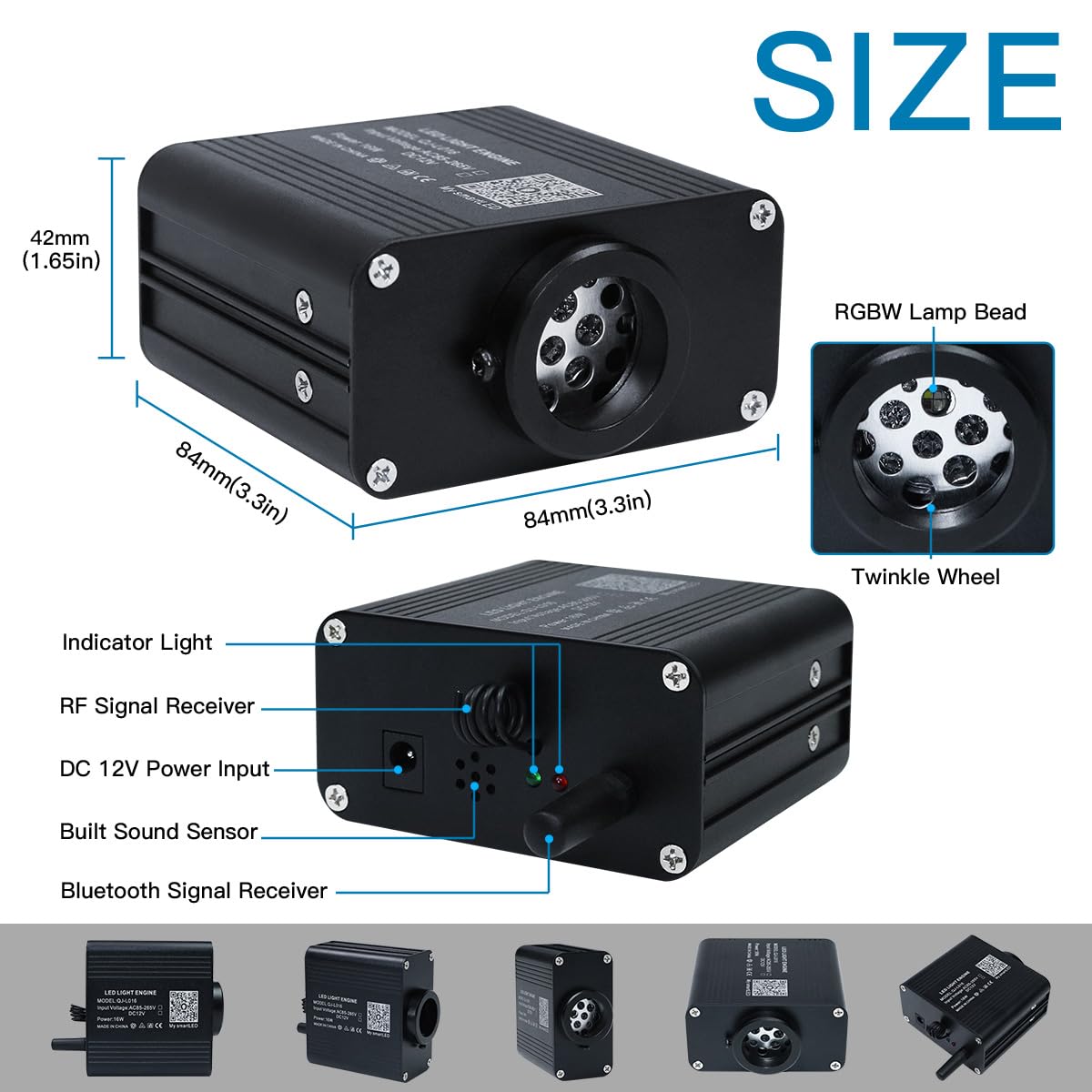 - 【Upgraded Small Size Version 16W Twinkle+Music Activated Fiber Optic Light Kit】Save more space, easy to hide the light engine and get twinkle effect star ceiling sky. Music/sound activated function makes your star ceiling much more unique.