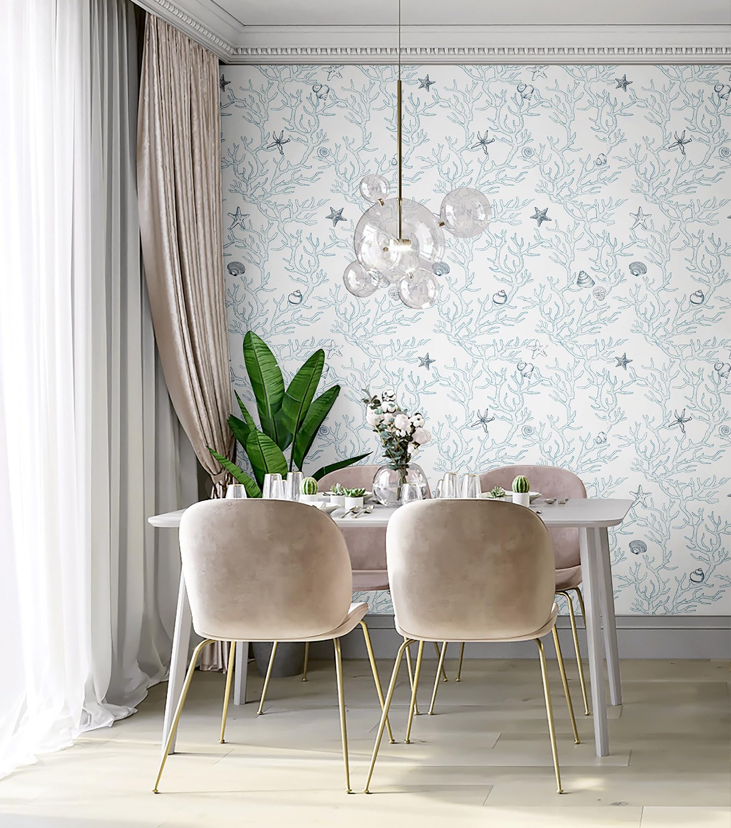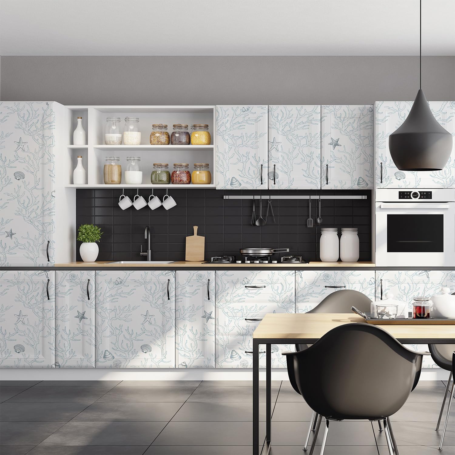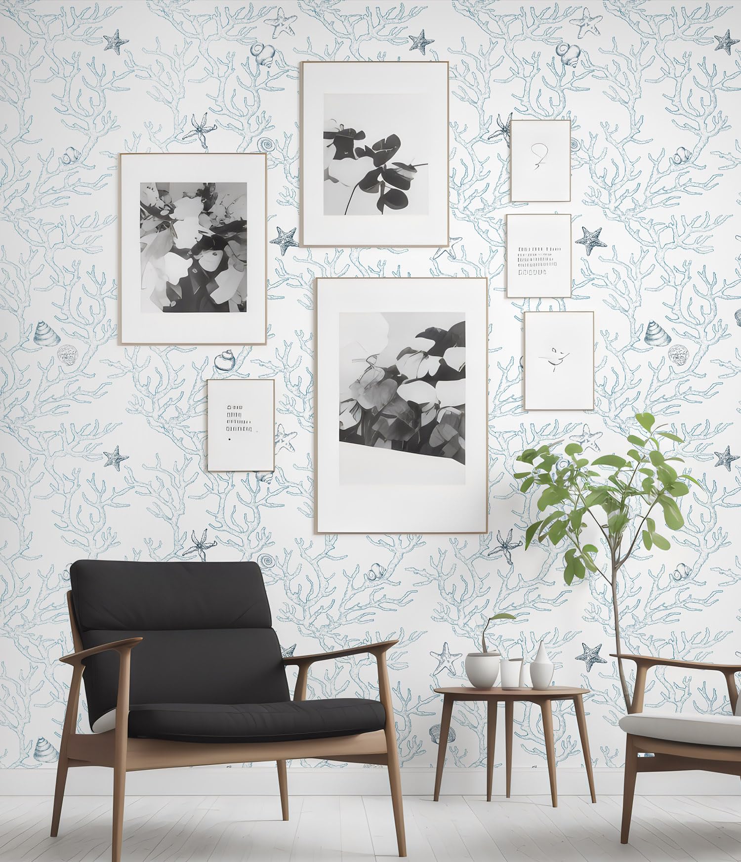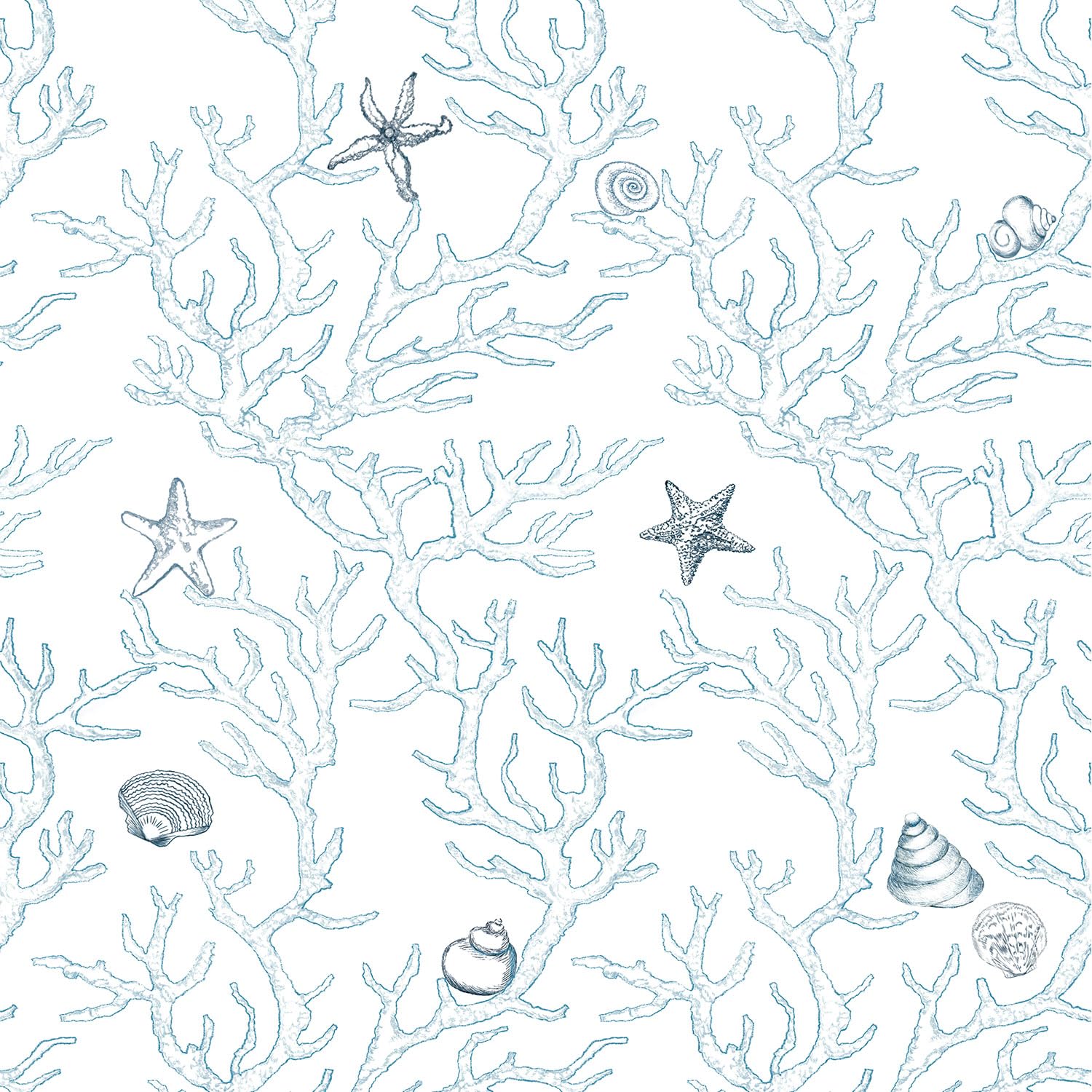 Akywall Ocean Wallpaper Peel and Stick White and Blue Contact Paper Textured Sea Coral Starfish Shells Self Adhesive Vinyl Roll Stick on Wallcovering Cute for Home Decor 118in