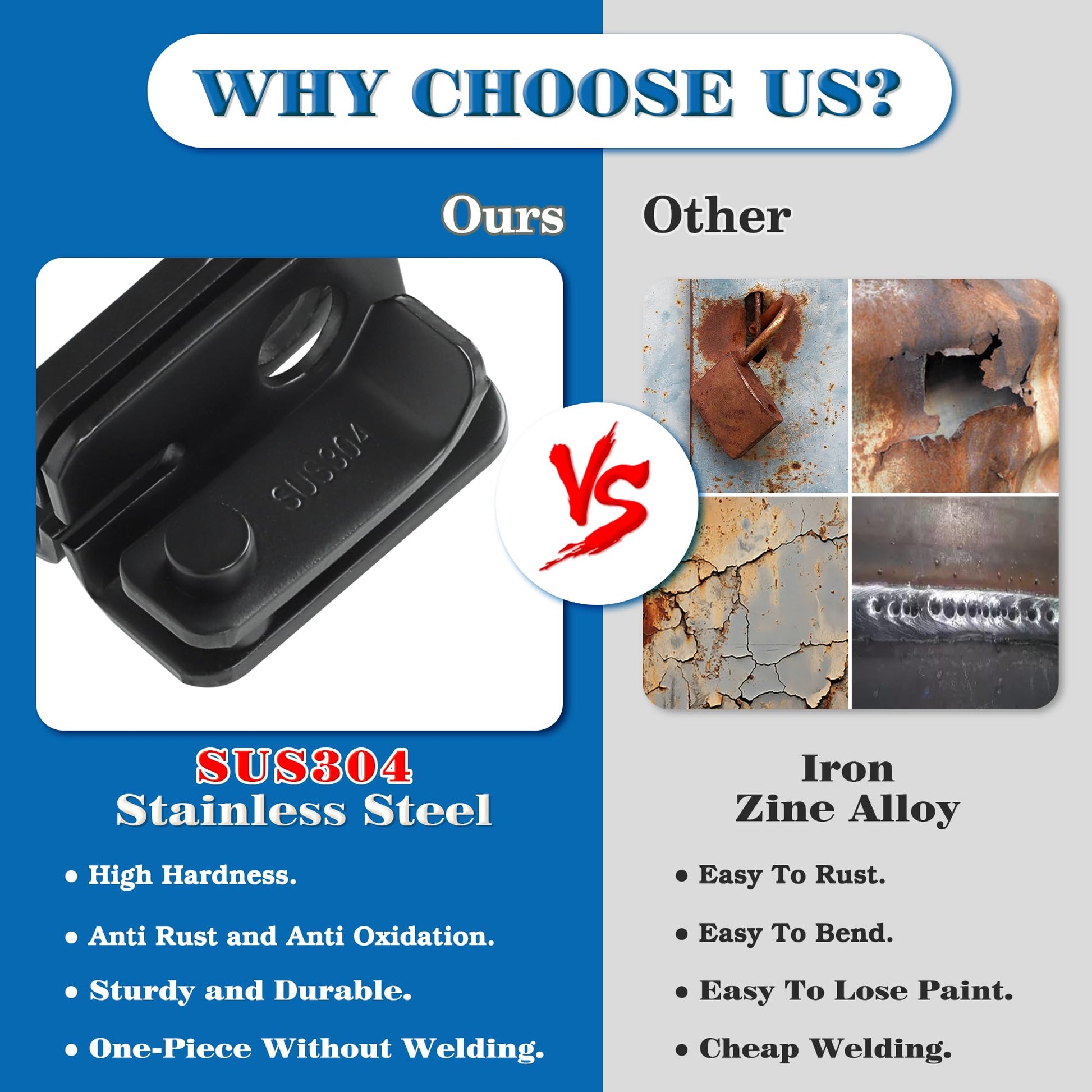 - 【Made of SUS304 Stainless Steel】The gate latches constructed from Hi-Q SUS304 stainless steel, strong and durable, ensuring quality and longevity, not easy to rust or oxidation.