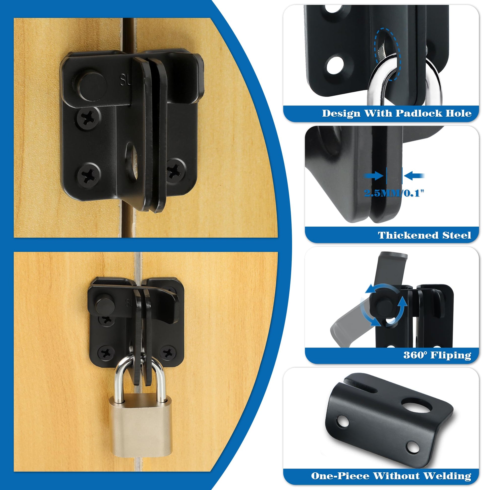 - 【Matte Black Finish】The latch lock is finished by ultra high temperature matte black spraying technology, black surface is smooth and beautiful, not easy to oxidation, fading and paint off.