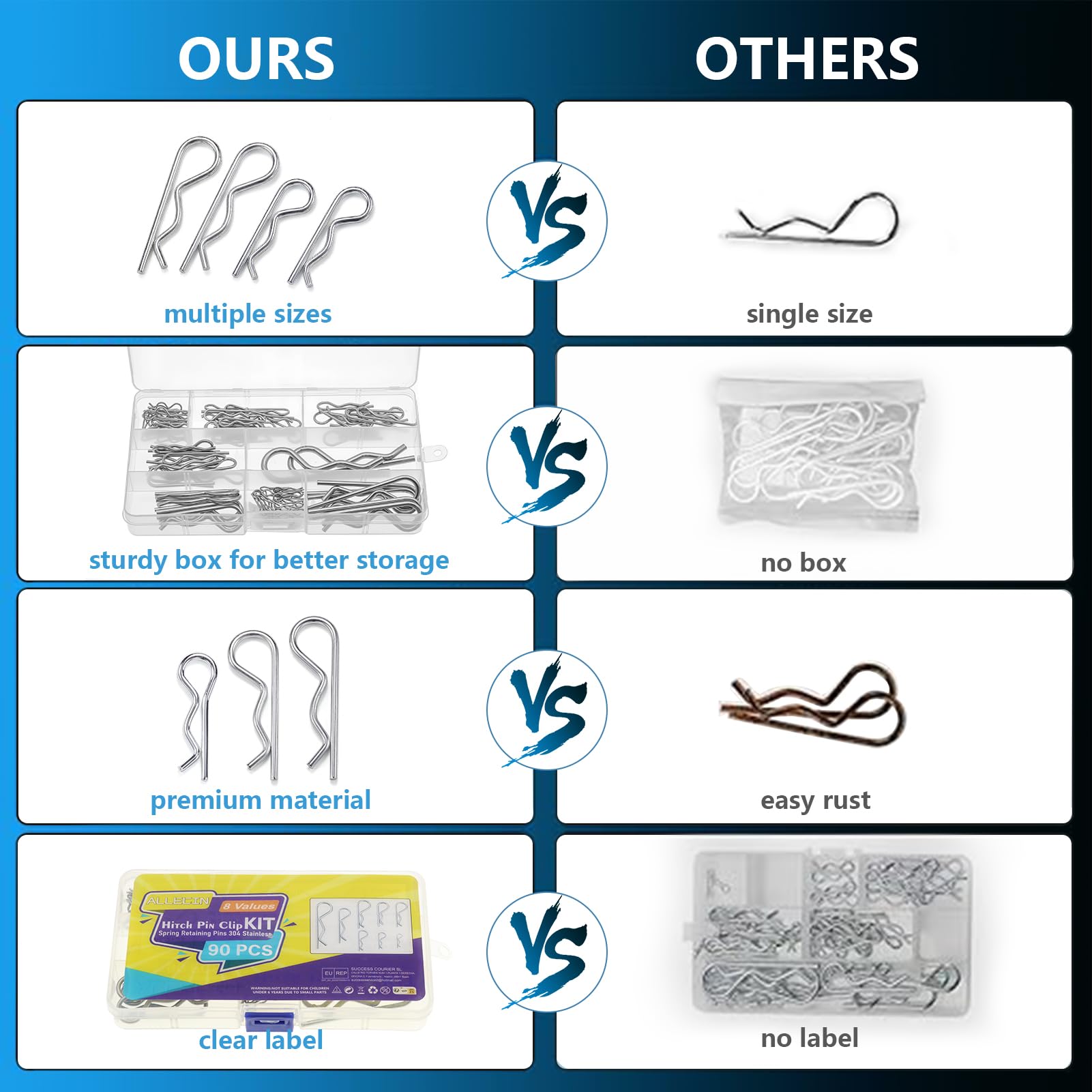 - Humanized packaging for easy storage and use. # Please confirm the size and quantity of Hitch Pin Clips before purchasing.
